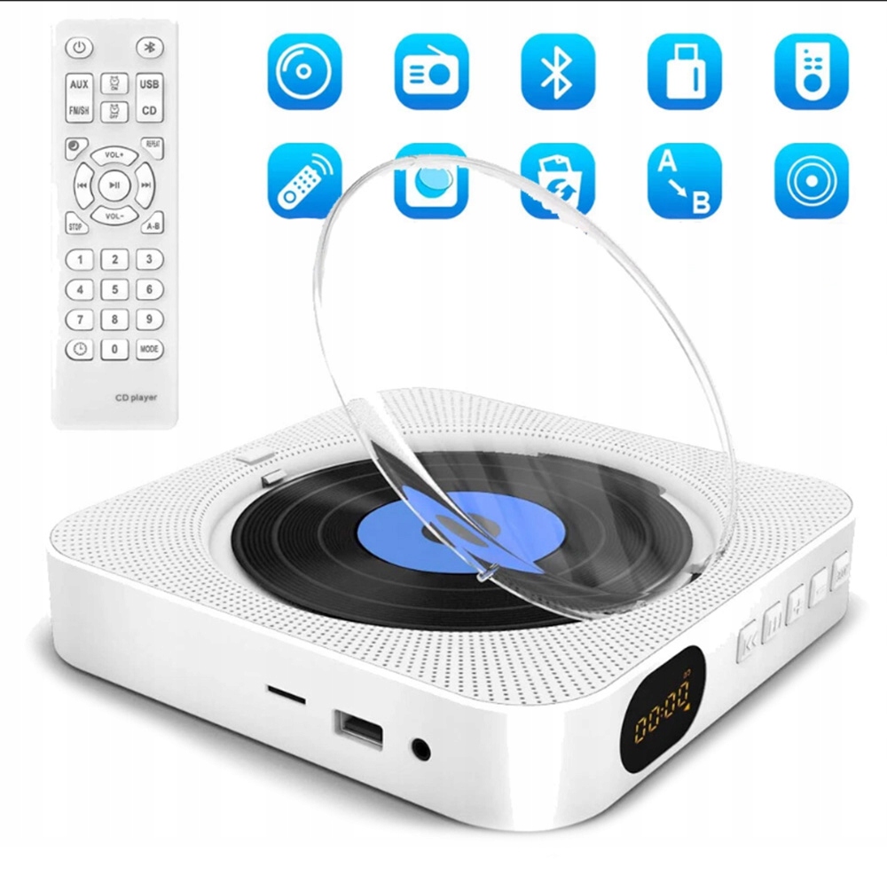 - Домашній програвач компакт-дисків підтримує аудіоформати CD, CD-R, CD-RW, MP3 і WMA, а також може відтворювати музику через Bluetooth, USB-накопичувач, картку microSD і вхід AUX.