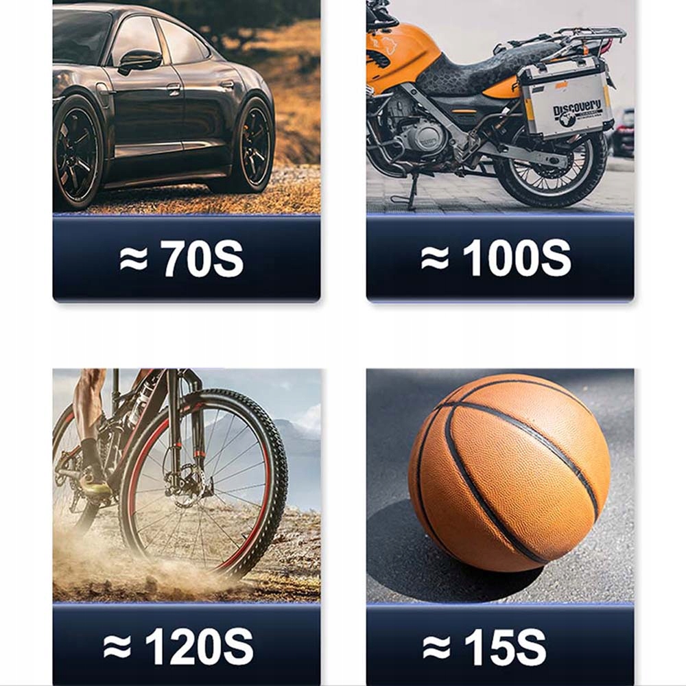 ⚡ Потужне накачування: Він має функцію накачування, яка може накачати стандартну автомобільну шину за лічені секунди та автоматично зупиняється, коли шина заповнена.