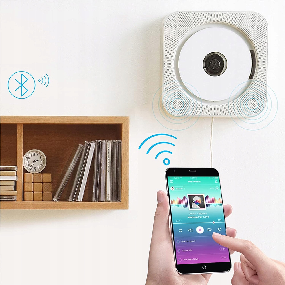 Цей компакт-програвач — це радіо та програвач в одному, багатофункціональний, підтримує кілька форматів: CD/CD-R/CD-RW/MP3/WMA. Оснащений двоканальними динаміками HIFI, що забезпечують чудову якість звуку. Вбудований Bluetooth для підключення до мобільних телефонів, комп’ютерів, планшетів тощо. Це не передавач Bluetooth. Оснащений дистанційним керуванням, ним можна керувати на відстані до 10 метрів.