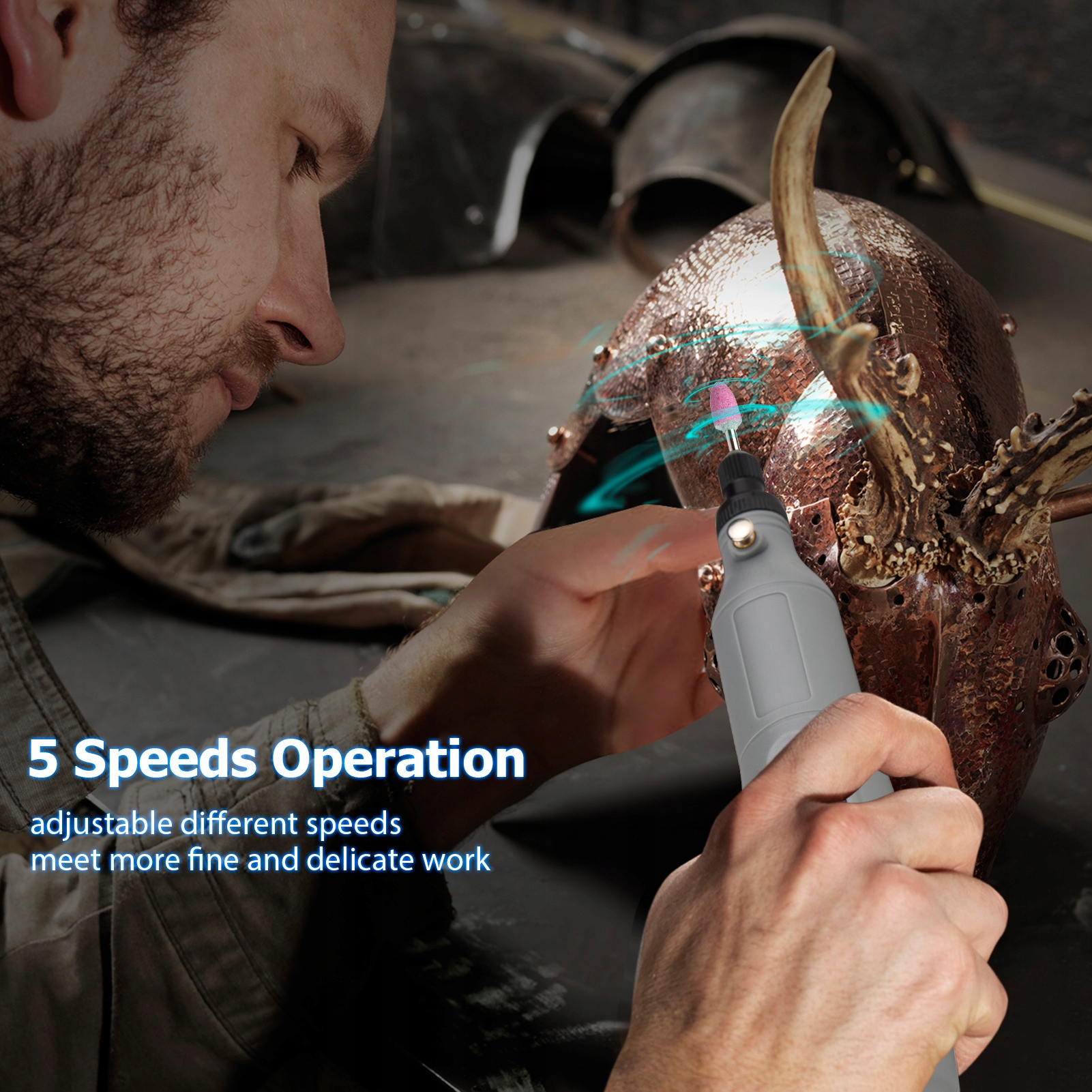 - Міні-шліфувальна машина: підходить для середніх і мікроскопічних скульптур, може застосовуватися для роботи з керамікою, порцеляною, пластиком, металом, каменем, глиною для ліплення, волоським горіхом, деревом та іншими гладкими верстатами.