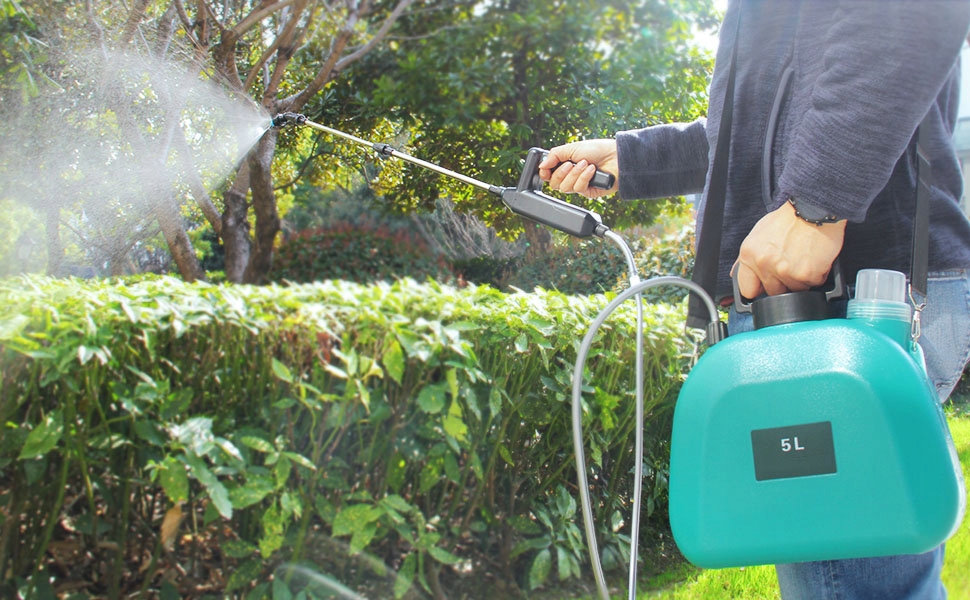 - Завдяки потужності 5 літрів Цей розпилення ідеально підходить для різних завдань, включаючи поливи рослини, прополку та запліднення газонів, обприскування добривами або гербіцидами, очищення будинку чи автомобіля та водного саду.