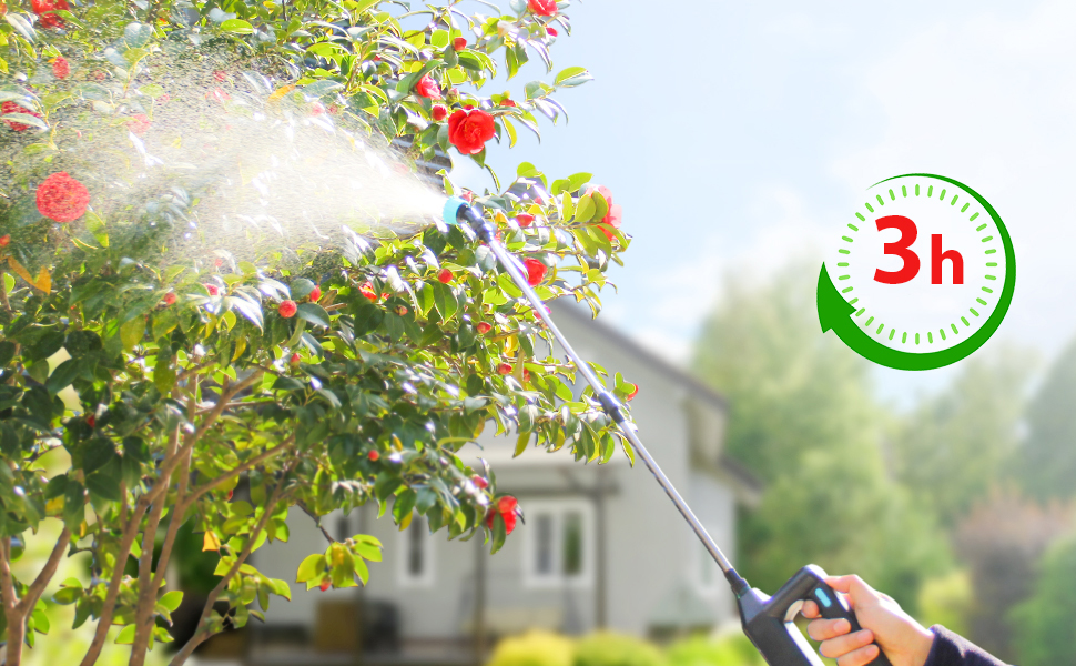 - Він має здатність продовжувати обприскувати 3 години , що робить його ідеальним для садів та газонів.