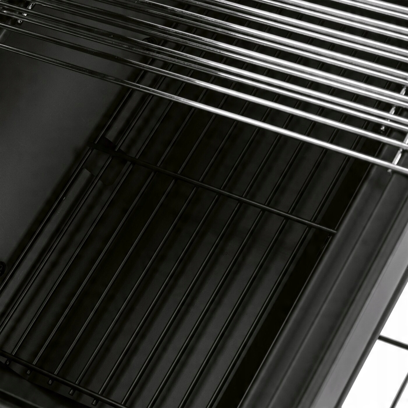 Інша інформація: - сталевий гриль з порошковим покриттям, - пластикові колеса, - термометр у кришці, - димохід, - хромована решітка для запікання, розміри: 47 x 34 см, - решітка для запікання вугілля, - полиця для золи, - ручки для регулювання топки, - заслінка для регулювання рівня вентиляції, - полиця для приладдя, розміри: 36,5 х 19,5 см, - висота гриля без димоходу: 101 см, - довжина разом з димоходом : 79 см, - ширина без ручки: 40 см, - розміри нижньої полиці: 43 х 32,5 см, - решітка для самостійної збірки, - інструкція в комплекті