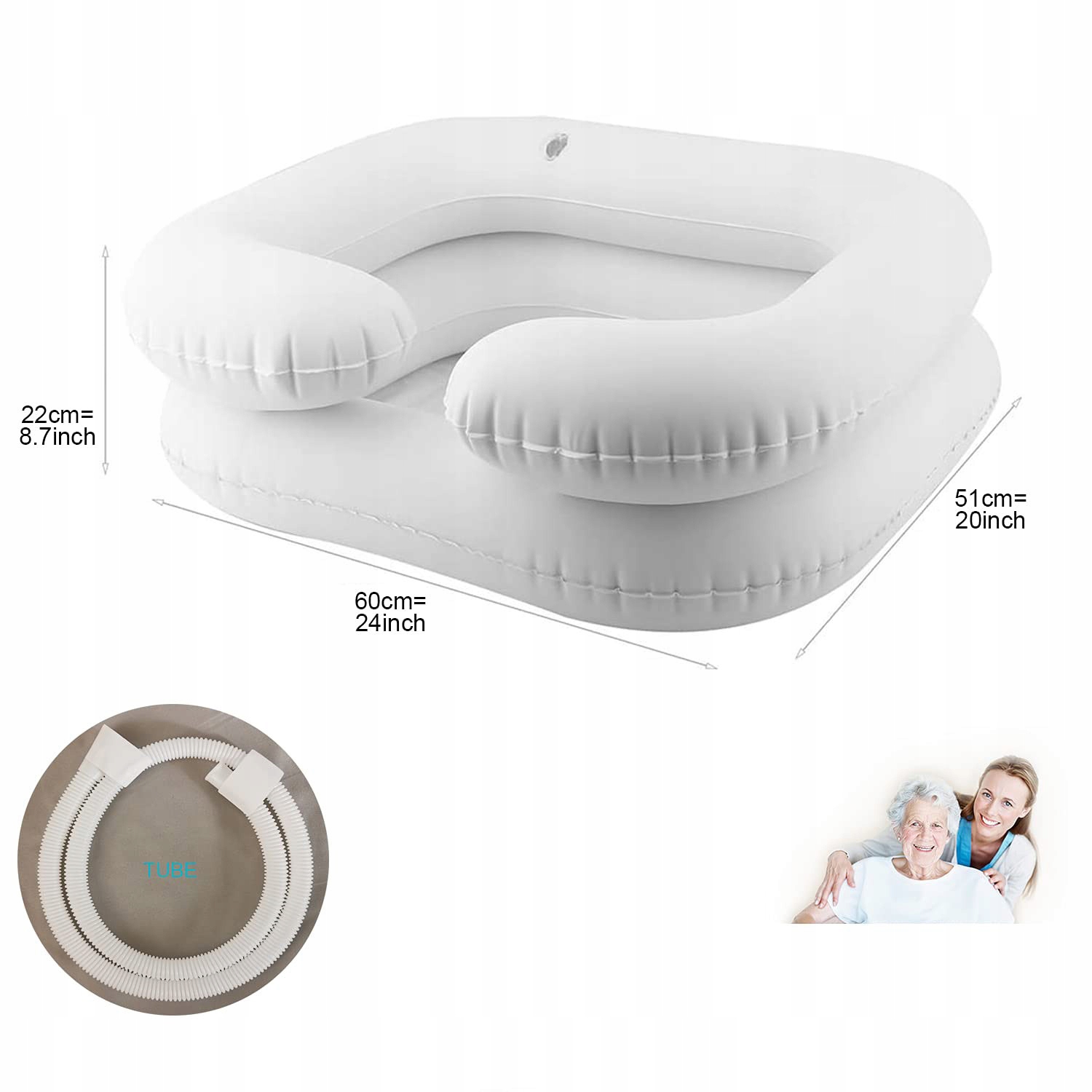 Цей надувний умивальник ідеально підходить для людей похилого віку, люди, прикуті до ліжка або обмежена моторна ефективність/після операції. Крім того, вона також підходить як ванна для волосся, а також ідеально підходить для промивання волосся з яблучним оцтом. Легка в полегшенні детоксикації волосся. Переконайтеся, що ви не наповнюєте басейн водою, щоб уникнути розливу. Його також можна використовувати в кемпінгу та в кемпінгових причепах.