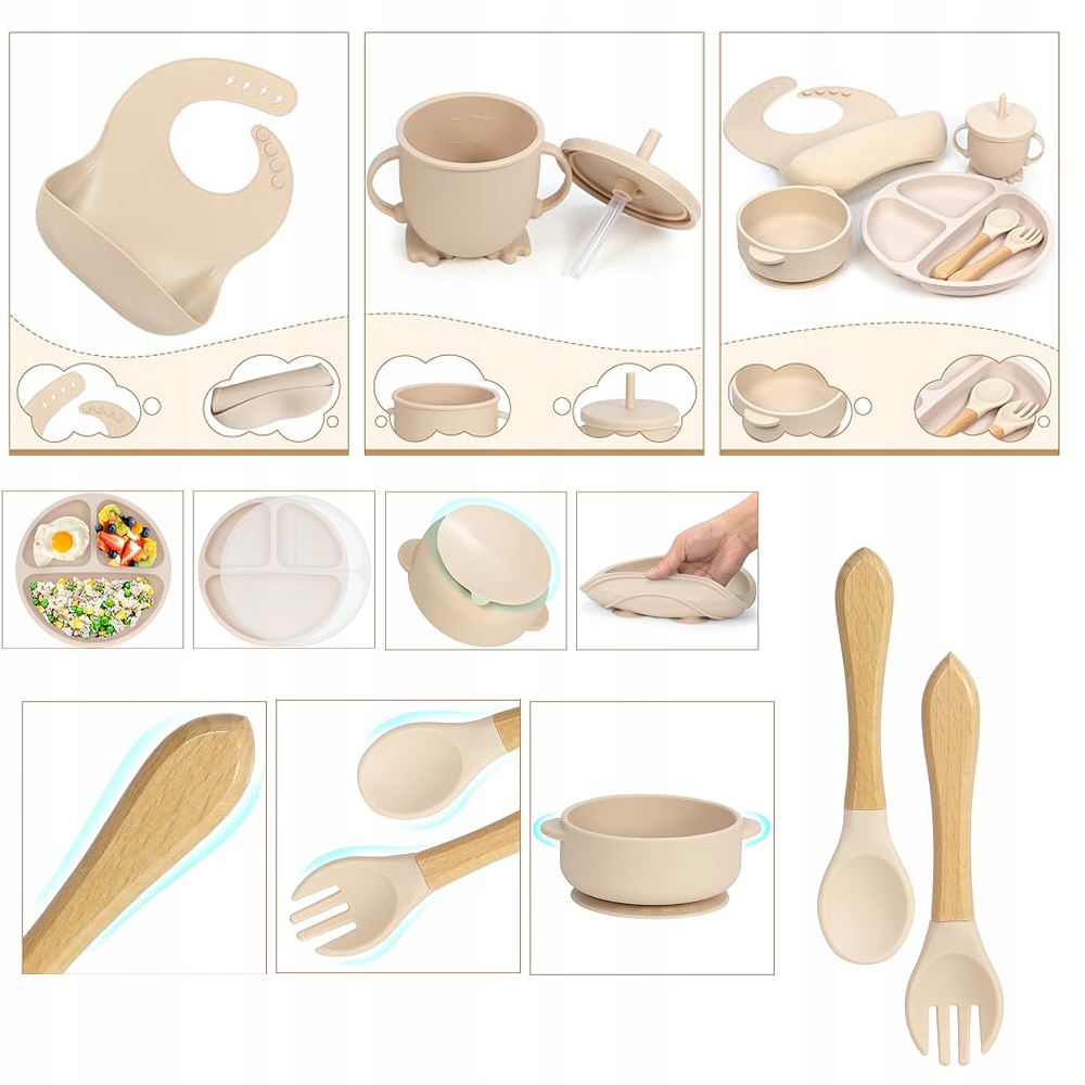 - 💖 Містить силіконові виделки, силіконові ложки, силіконовий дитячий посуд з кришками, силіконові нагрудники, силіконові миски та силіконові поїлки. Кожен виріб виготовлено з високоякісного харчового силікону та не містить BPA.
