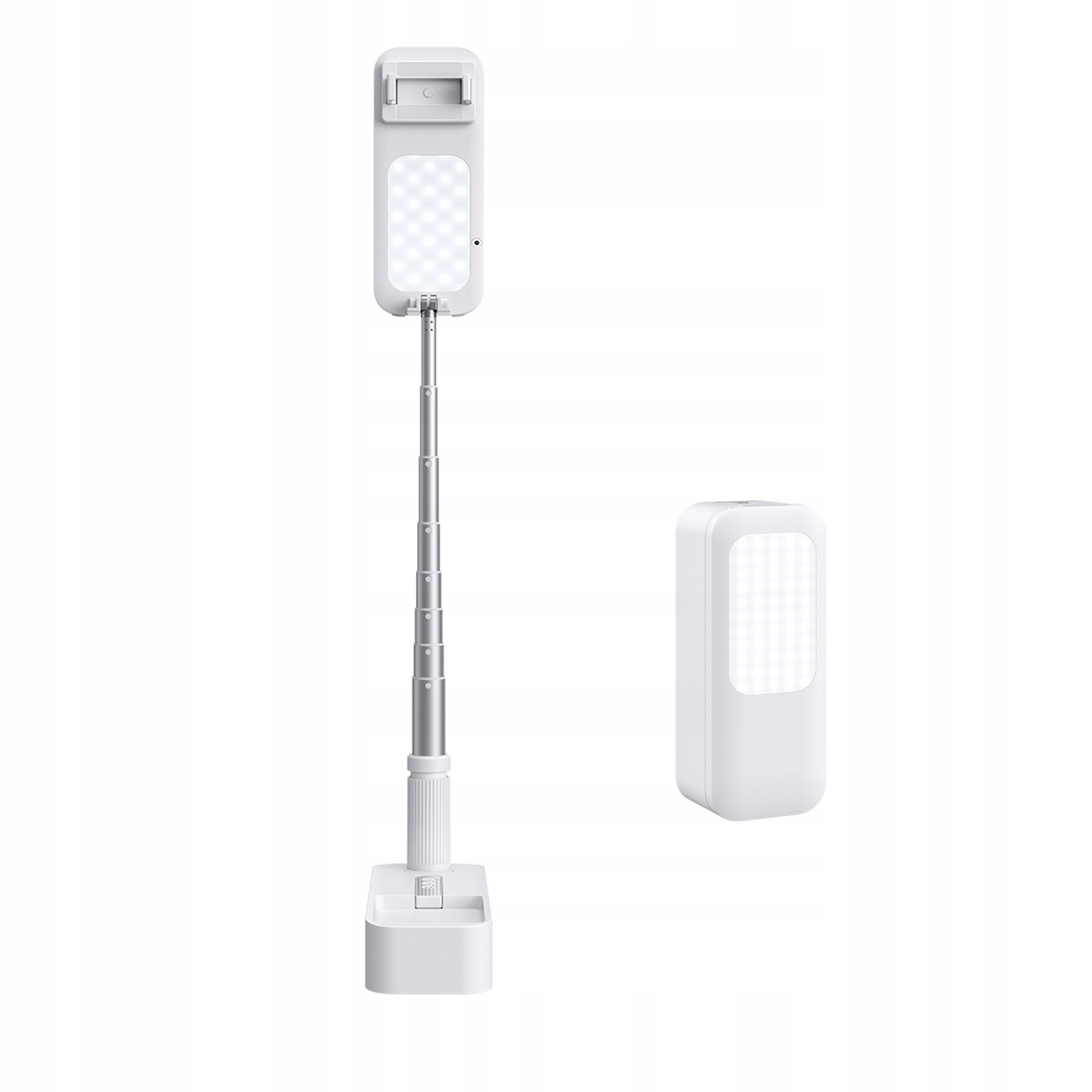 Смартфон на пряму трансляцію, відеозапис, онлайн -розмови, онлайн -викладання, перегляд телевізійних програм тощо. Повністю складена конструкція, дуже зручна для носіння. А обертована конструкція на 360 ° дозволяє вільно регулювати кут використання ручки телефону, дуже гнучкий. 4 Підставка можна відрегулювати залежно від потреб та максимуму. висота до 130 см; Він підтримує вертикальний і вертикальний нахил, ідеально підходить для пострілів під великим кутом. 4 4 130 см акумуляторів: 800 мАг (світлодіодне світло), 50 мАг (віддалений затвор)
