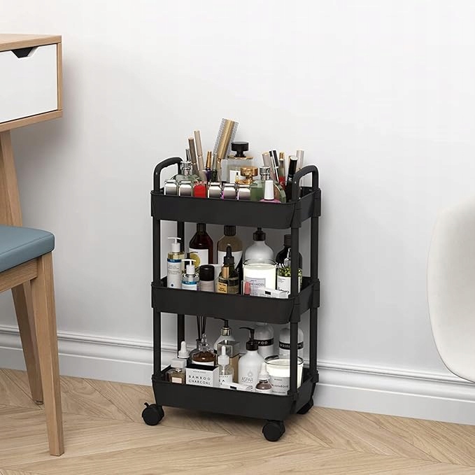 3-шаровий пластиковий візок, багатофункціональний кошик для зберігання, офіс, вітальня, кухня, мобільна коробка для зберігання з колесами, чорний