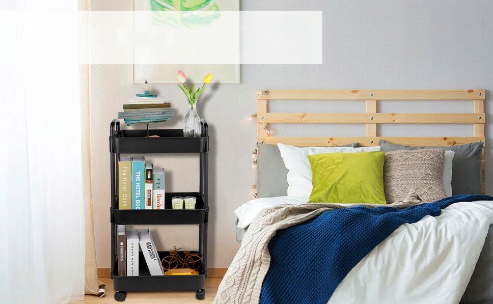Портативний стіл полиці на колесах із закритими колесами, 3 полиця