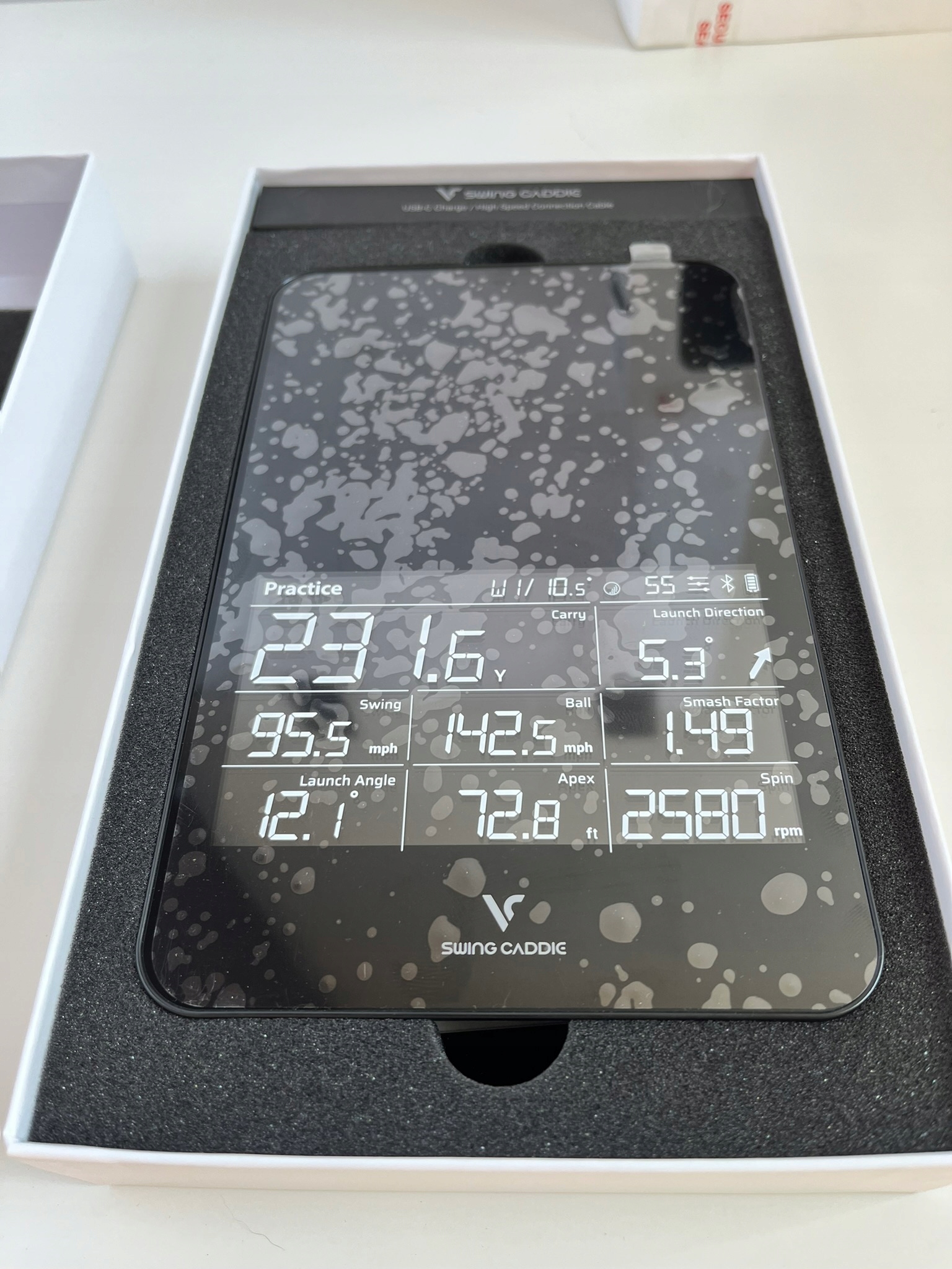 Пристрій підключається до мобільного телефону або планшета через Bluetooth і дозволяє відстежувати результати гойдання через мобільний додаток MySwingCaddie. Щоб ще більше покращити ваші враження від симулятора, пристрій сумісний із додатком E6 Connect і повним набором фотореалістичних полів. Пульт дистанційного керування, дистанційний голосовий вихід і перезаряджувана літієва батарея забезпечують найвищий рівень досвіду та зручності.