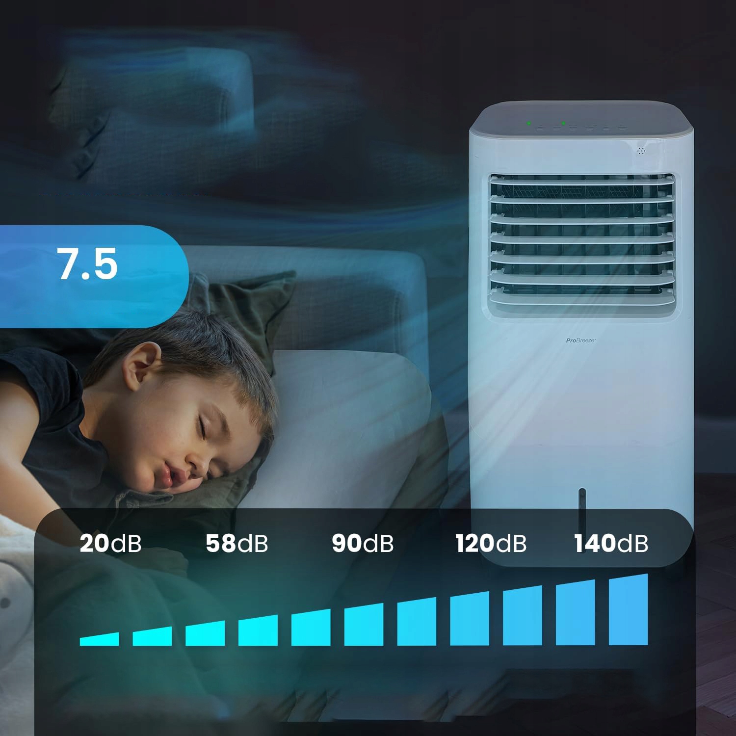 Портативний кондиціонер Pro Breeze PB-AC03 - сучасний пристрій, який подарує Вам приємну прохолоду в спекотні дні. Завдяки ефективній системі охолодження цей портативний кондиціонер ідеально підходить для приміщень середнього розміру, таких як спальні, офіси або вітальні. Його спеціально розроблена структура дозволяє швидко та ефективно знизити температуру до 408 м³/год, що робить його ідеальним рішенням для літніх днів. Має вбудований резервуар для води об'ємом 10 літрів, що істотно полегшує його використання, позбавляючи від необхідності постійно доливати воду. Пристрій зручний, а його сучасний дизайн вписується в естетику будь-якого інтер'єру.