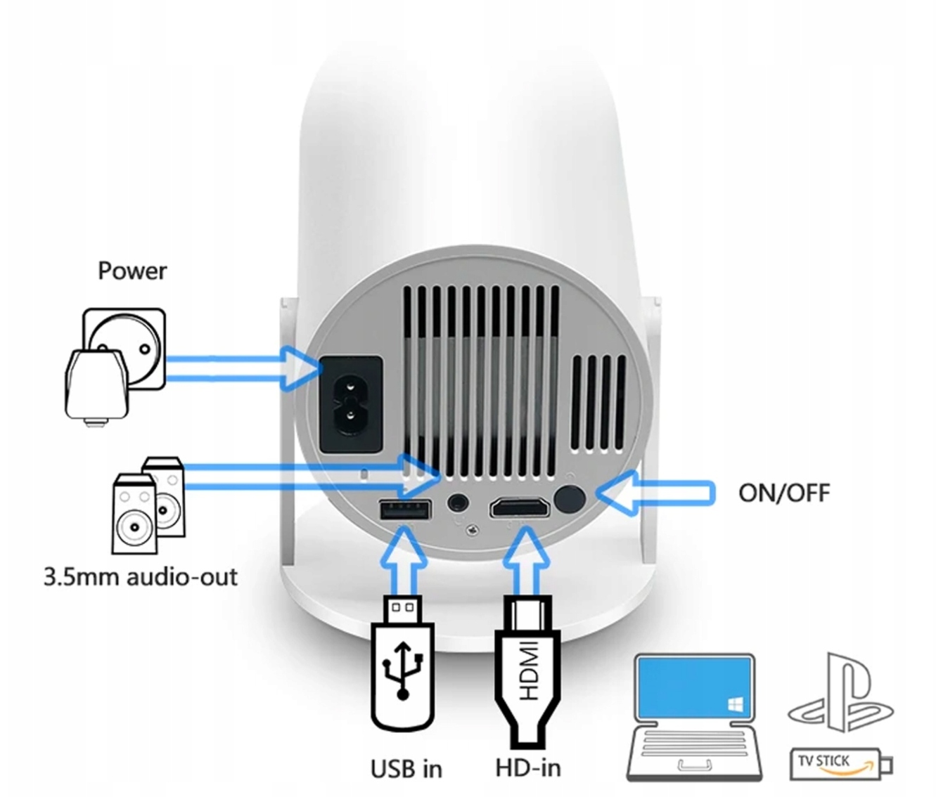 - ✅ З вбудованим аудіо, USB, HDMI і USB порт, ви можете використовувати цей проектор із накопичувачем, телевізором, ноутбуком, комп’ютером, колонками, навушниками тощо.