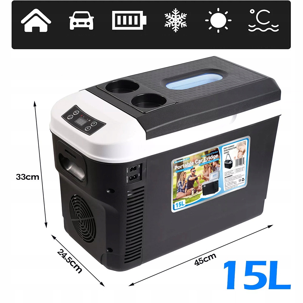 Цей холодильник пропонує велику потужність 15 літрів і пропонує достатньо місця для напоїв, фруктів, морозива, овочів, морепродуктів та м'яса. Незалежно від того, чи йдеться про сімейні урочистості, поїздки на свіжому повітрі чи кемпінг - це завжди пропонує багато місця для охолодження та опалення та є незамінним помічником у повсякденному житті