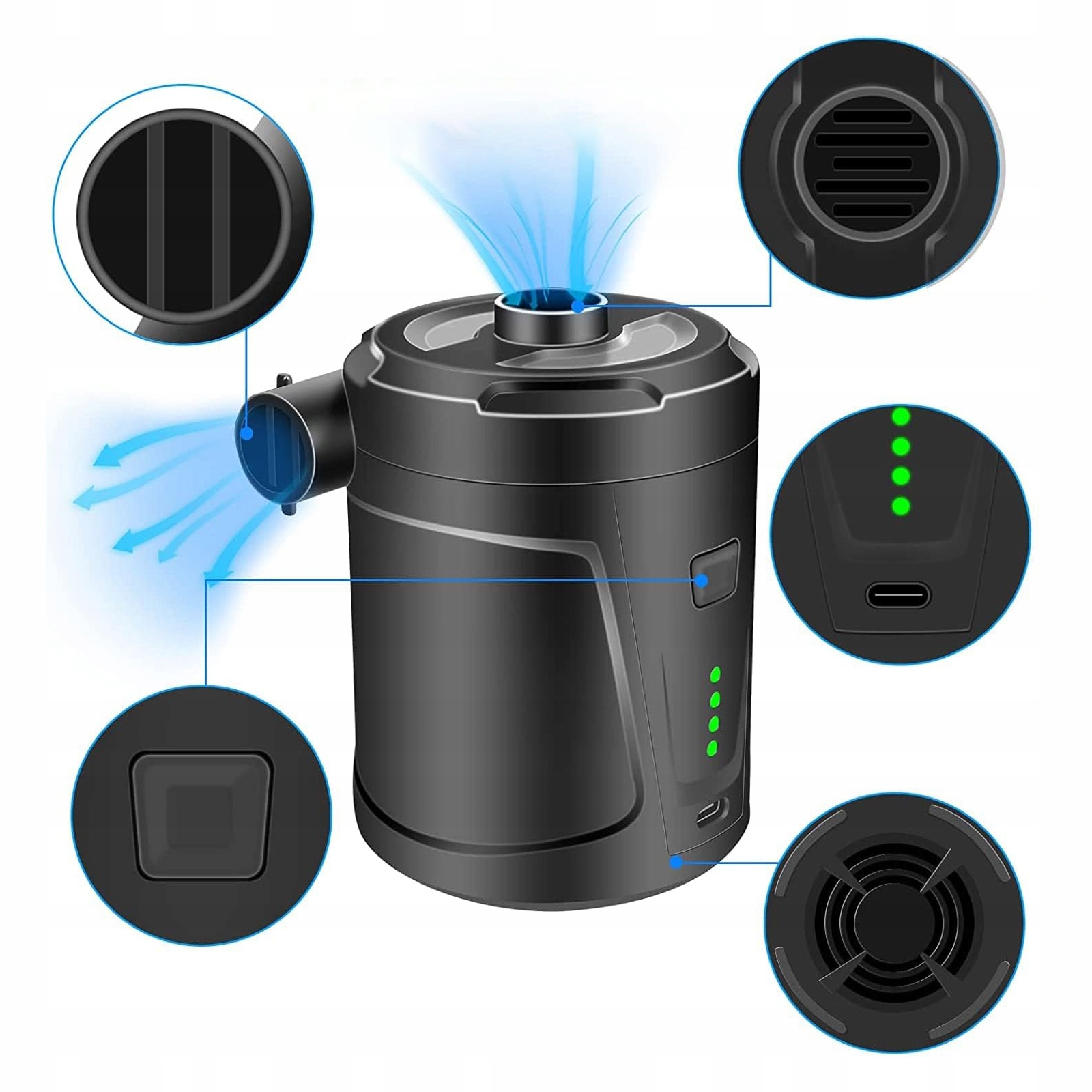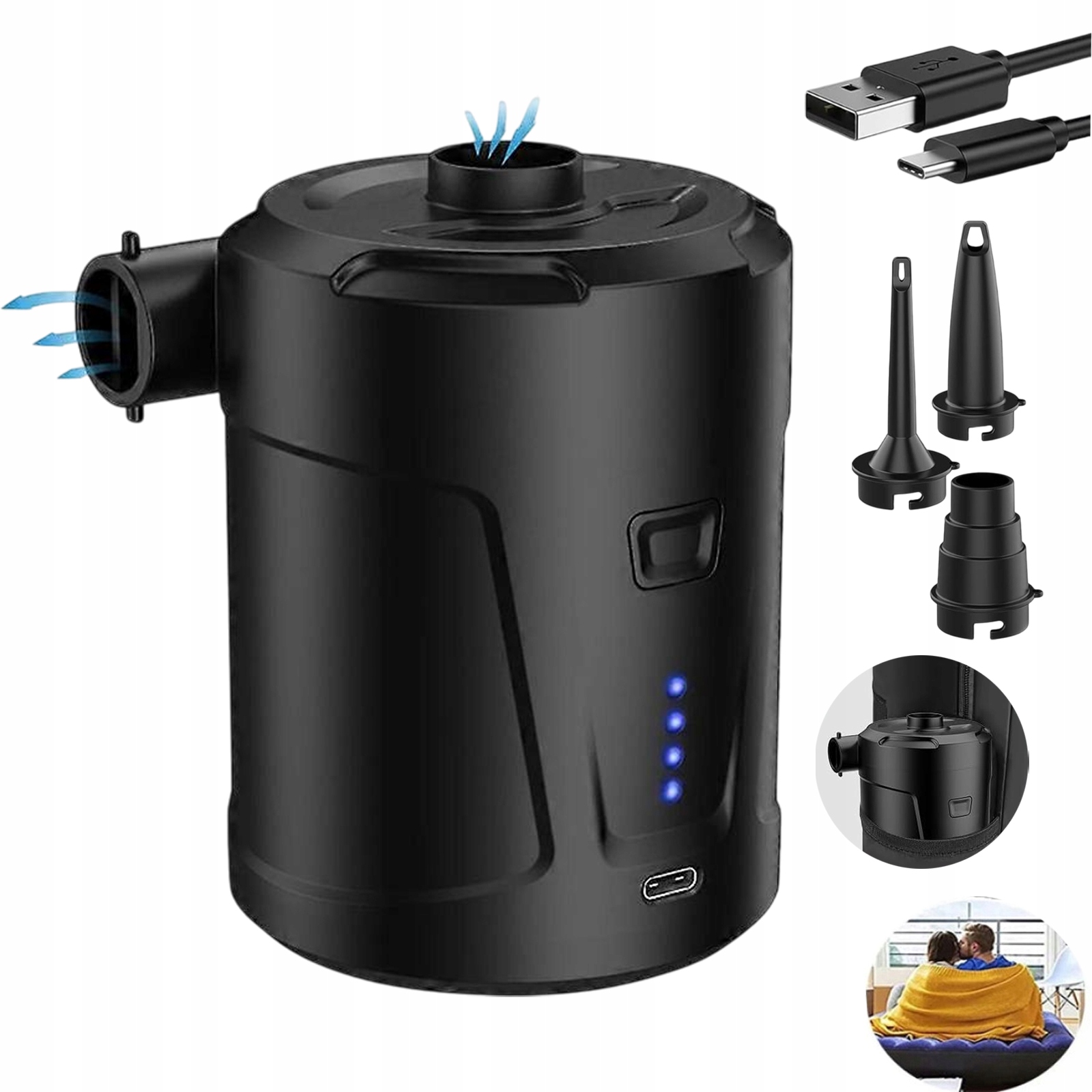 ПОРТАТИВНИЙ USB ЕЛЕКТРИЧНИЙ НАСОС 5200MAH ДЛЯ НАДУВНИХ ЧОВНІВ МАТРАС ПВХ ВИРОБИ