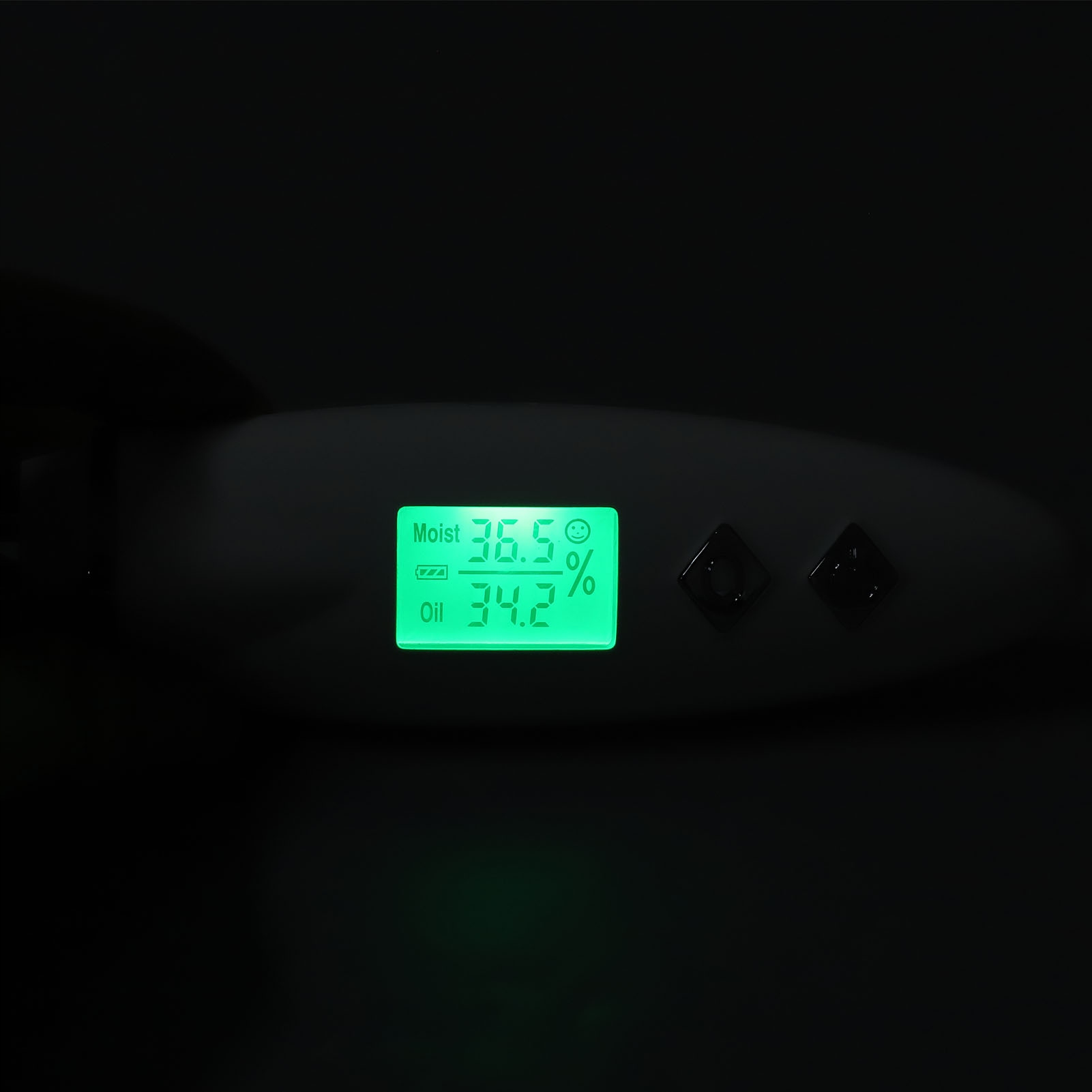 3. 3-кольорова контрольна лампа: вона чітко показує вашу шкіру. Зелений означає здоровий баланс вологи та олії, а червоний означає сухість. Колір жовтого означає насичення вологою та олією.