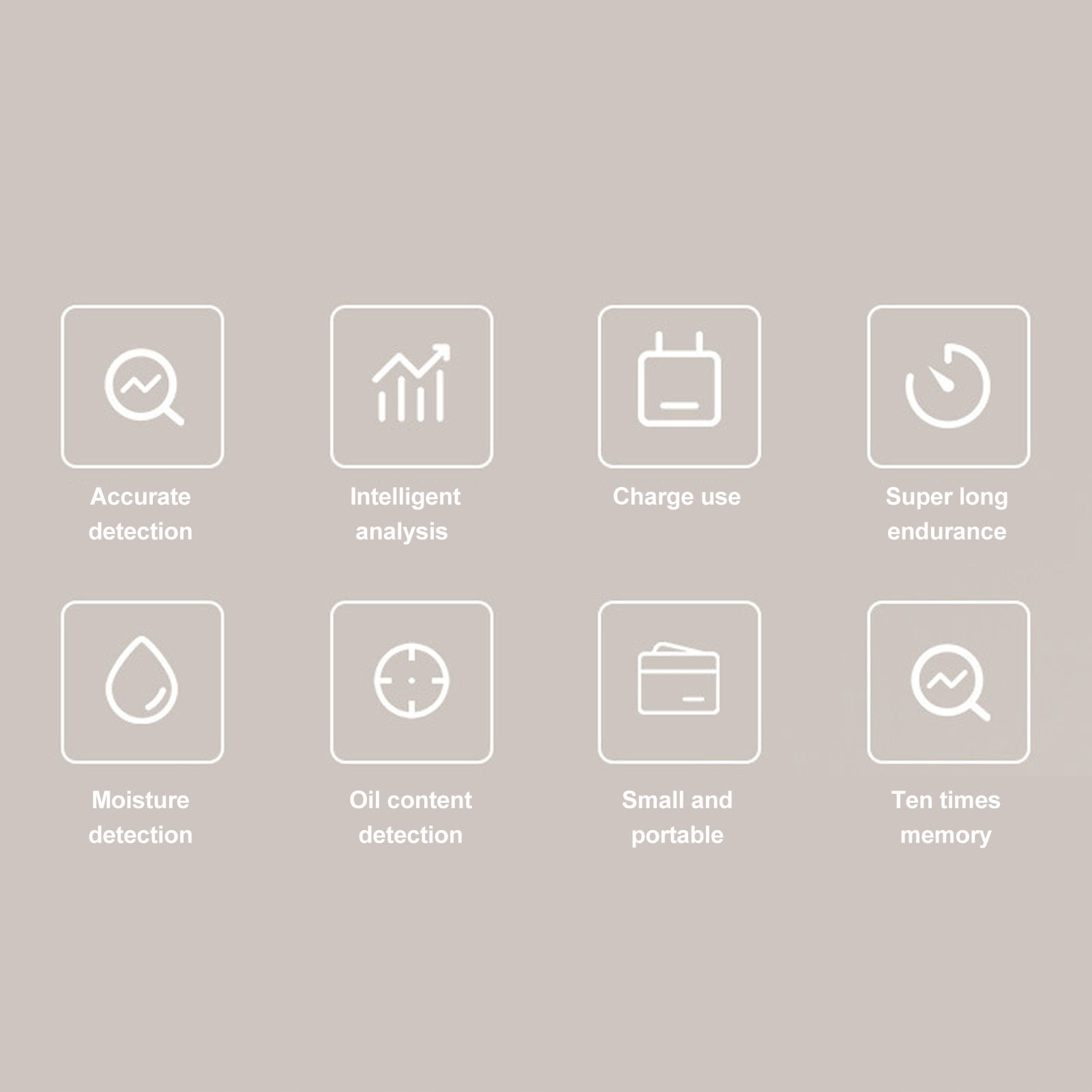 1. Інтелектуальний аналіз: використовує інтелектуальний датчик, який виявляє рівень гідратації та рівень шкірного сала та аналізує його стан всього за 3 секунди.