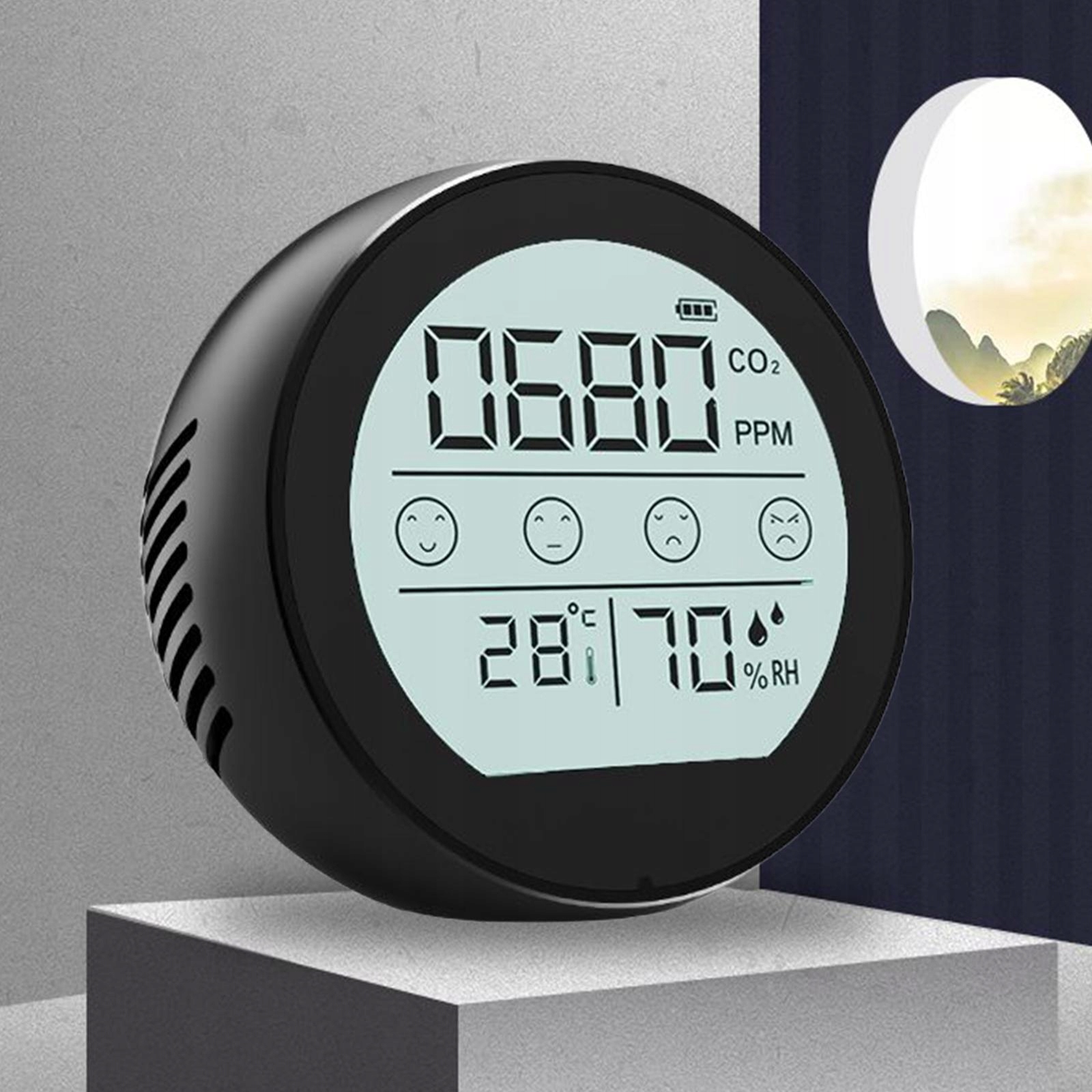 Портативний вимірювач CO2, температура, вологість, монітор, сигналізація CO2 в приміщенні, чорний
