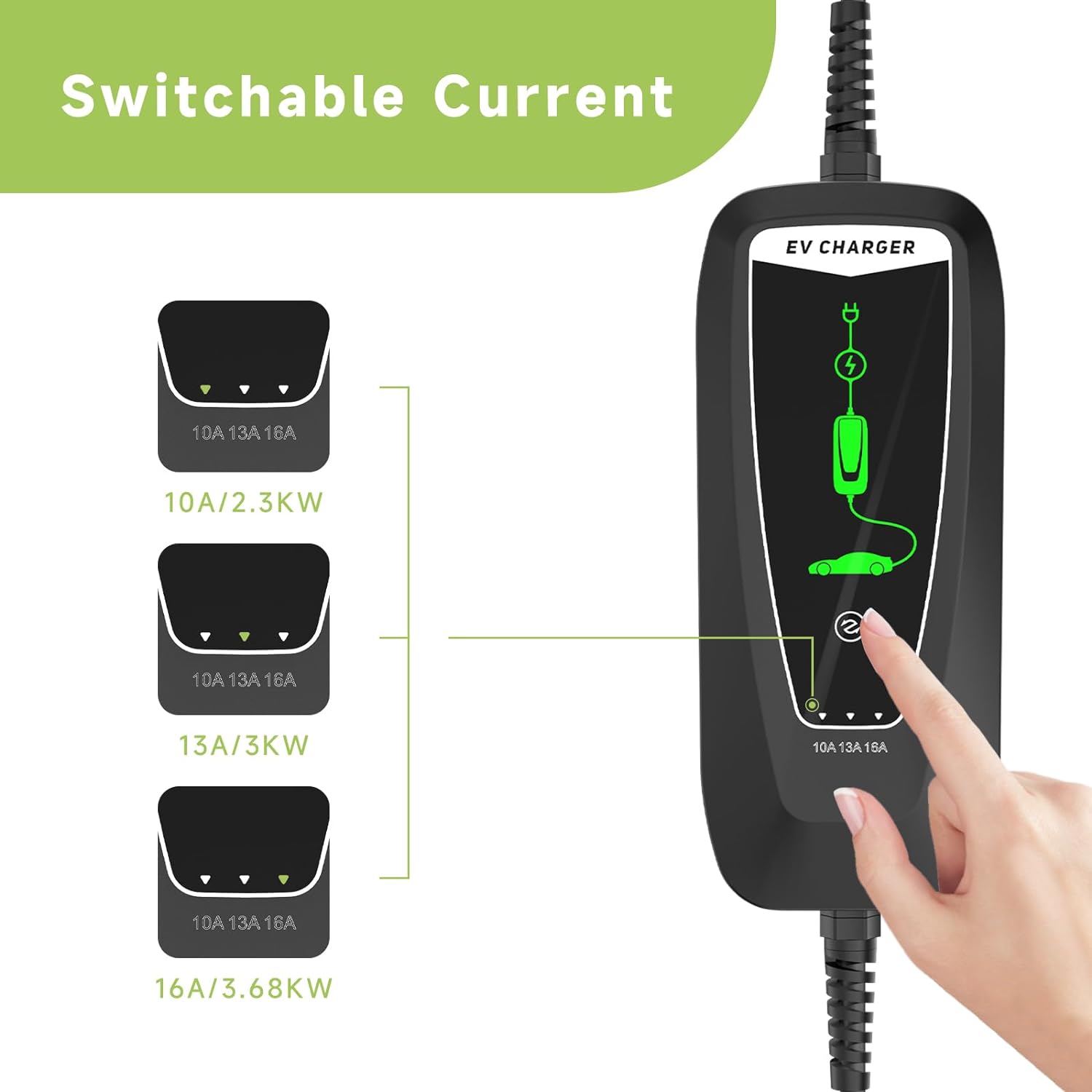 - Зручна та швидка зарядка: наш автомобільний зарядний пристрій типу 2 з вилкою IEC 62196-2 може задовольнити ваші щоденні потреби зарядки. Відвезений до машини на ходу чи подорожі, все, що вам потрібно, - це гніздо Шуко. Переключений струм 10a/13a/16a може зустрічатися з різними екранами зарядки швидше, ніж традиційні зарядні пристрої 4
