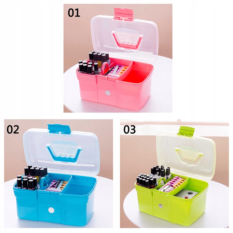 2, верхній шар: його верхній шар може бути гнучко розміщений із загальноприйнятим лаку для нігтів, невеликими інструментами, які зазвичай використовуються в прикрасі нігтів, а нижній шар має велику ємність і його можна розмістити, і його можна розмістити прилад для фототерапії.