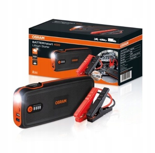 OSRAM BATTERYstart400 — літій-кобальтовий бустер LiCoO2 для запуску транспортних засобів на 12 В із потужністю двигуна до 8 л (бензин) і 4 л (дизель). Компактний без шкоди для інших параметрів, BATTERYstart400 важить лише 700 г і може легко зберігатися в бардачку.