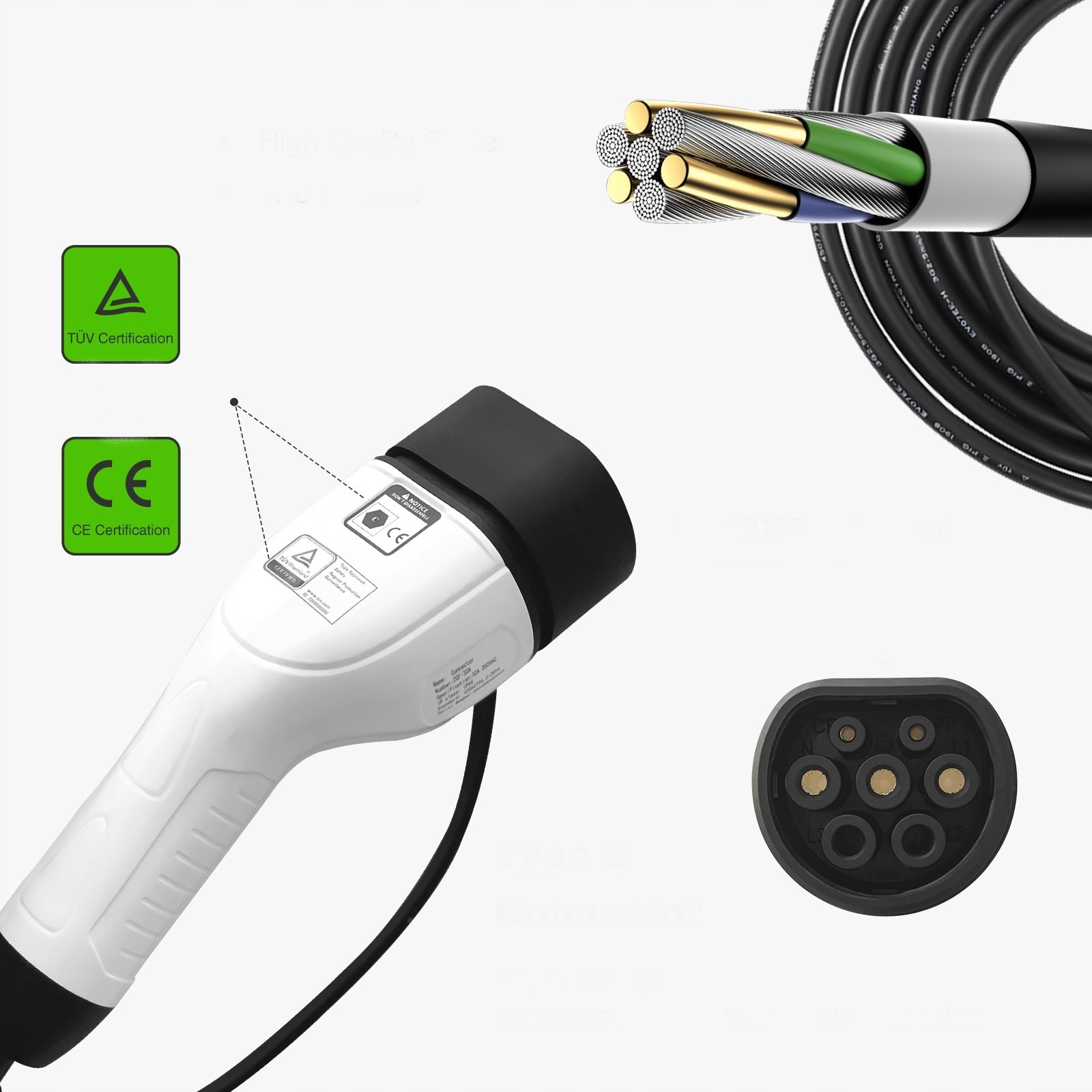 - Оснащено штекером EU Type2