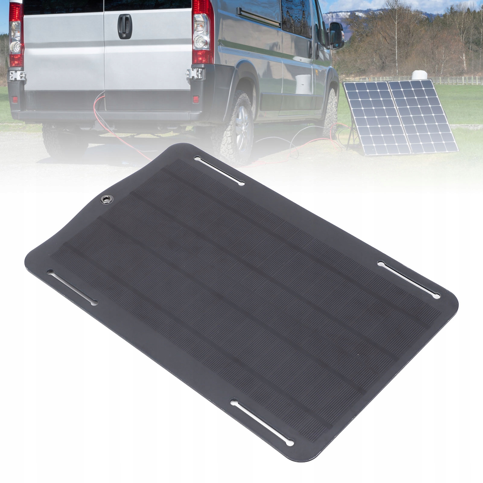 5. Широке застосування: ідеально підходить для використання з акумуляторами автомобілів, мотоциклів, тракторів, човнів тощо. Ця сонячна зарядна панель пропонує ефективне рішення для зарядки, яке є водночас зручним і практичним.