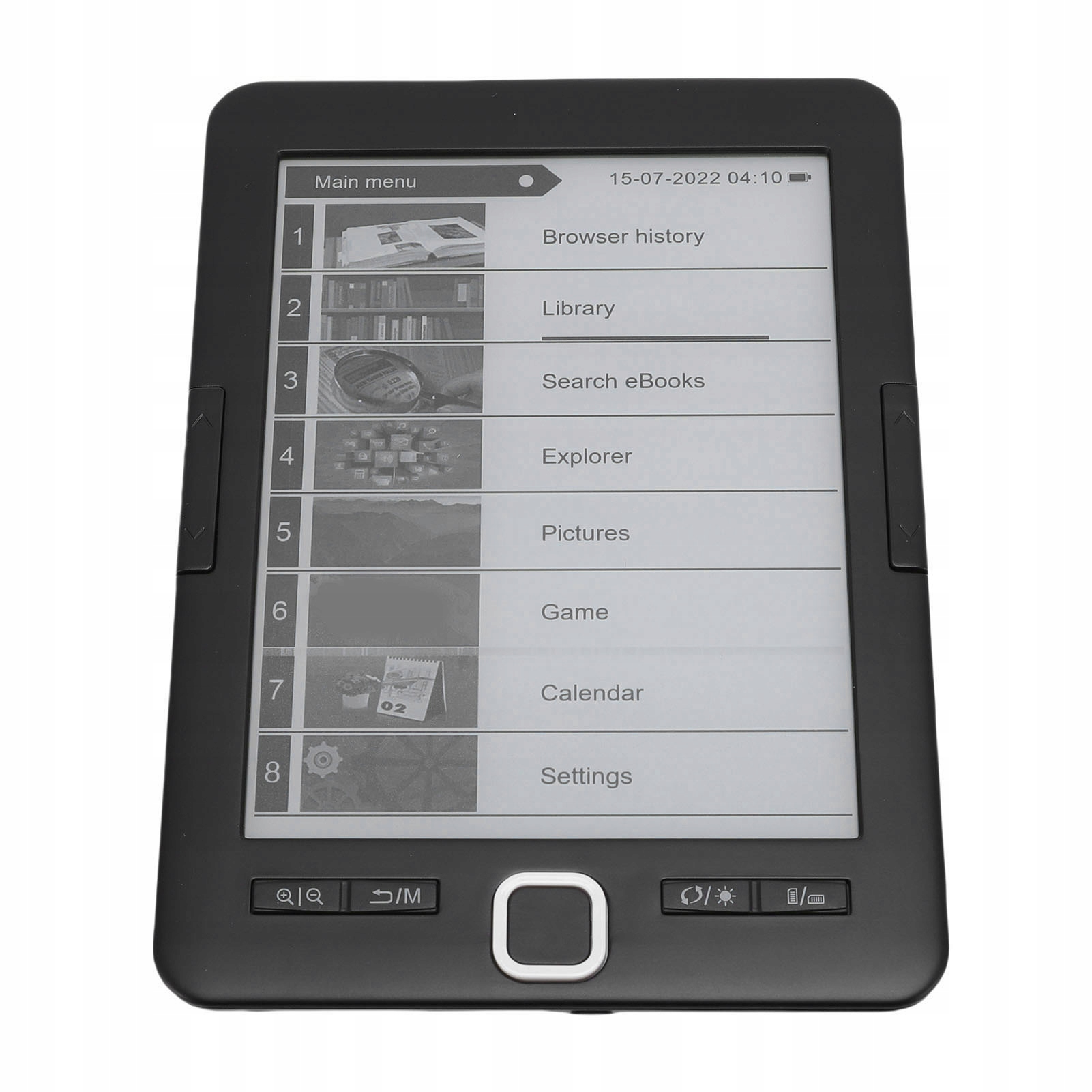 1. 6-дюймовий екран: пристрій для читання електронних книг має 6-дюймовий екран, який чітко відображає різноманітний вміст, одночасно забезпечуючи зручну для очей технологію для зменшення напруги очей. Насолоджуйтесь зручним читанням із чіткістю.