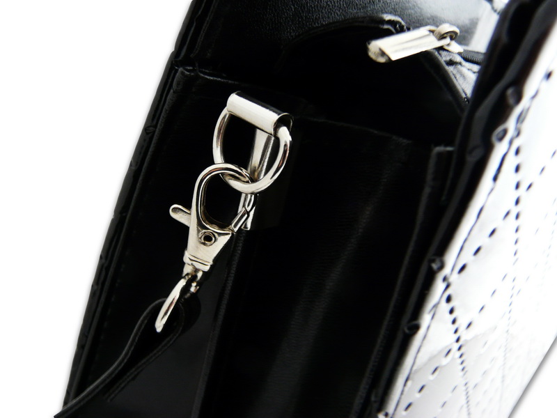 Всередині сумки є відділення на блискавці, кишеня на блискавці, місце для ручок, візиток і мобільного телефону. На дні портфеля є завитки для захисту матеріалу від стирання. Срібна фурнітура. Портфель має довгий знімний ремінь (105 см)