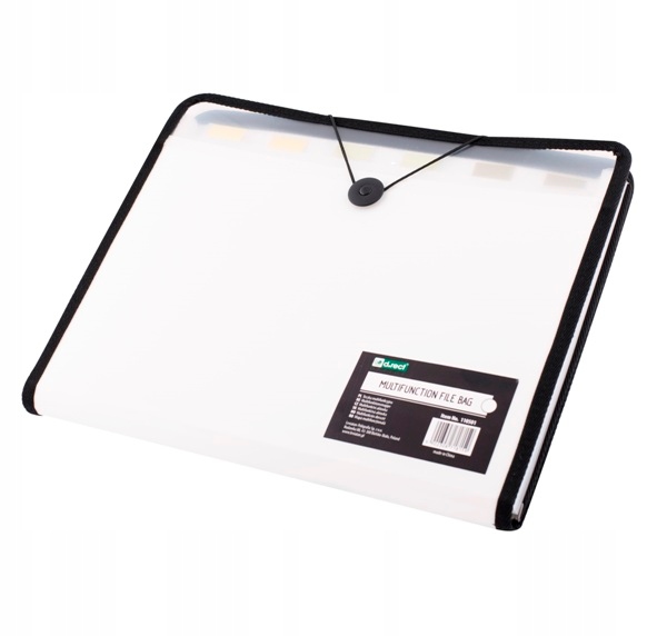Високоякісна багатофункціональна папка, призначена для організації та зберігання документів формату А4. Це ідеальне рішення для кожного студента та офісного працівника. Оснащений 7 прозорими відділеннями, які захищають документи від пошкоджень. Додаткові індекси допомагають швидко ідентифікувати вміст. Відділення закриваються на еластичну стрічку, яка додатково захищає від випадання документів під час транспортування. У портфелі є практичний блокнот формату А4 в лінію, який дозволяє швидко робити нотатки під час конференцій і лекцій. Оснащений підставкою для ручок і кишенею для візиток. Портфель закривається на еластичну стрічку, яка захищає вміст від випадання. Палітурка папки виготовлена з товстого PP 750 mic з прозорим вікном.
