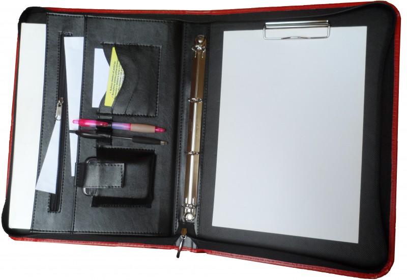Додатково портфель оснащений кільцем на 4 кільця і затискачем для аркушів А4.