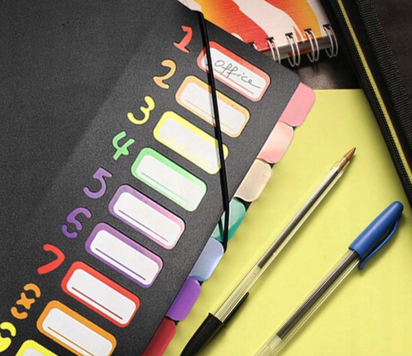 Кожне відділення має різний колір, тому кожну секцію можна відразу ідентифікувати, що дає змогу швидко знаходити документи та ефективніше працювати чи навчатися