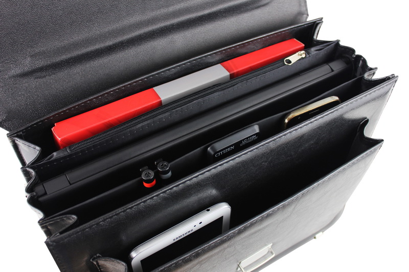 Всередині портфеля є три відділення, кишеня на блискавці, місце для ручок, візиток і мобільного телефону. Внутрішня частина портфеля обшита еластичною підкладкою.