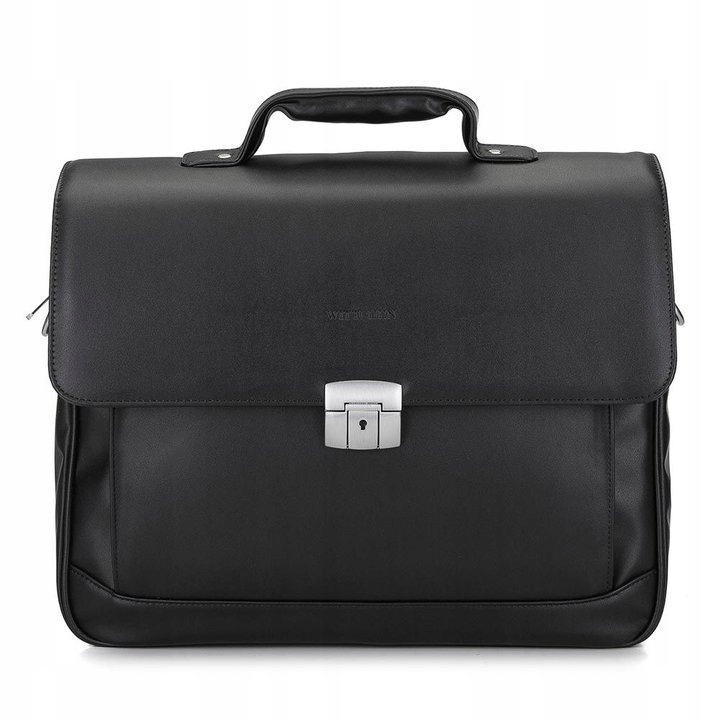 Чорний чоловічий портфель з екошкіри для ноутбука відмінно підійде людям, які люблять стильні аксесуари. Класичний крій чудово поєднується з будь-яким урочистим одягом, а функціональність робить модель ідеальною для роботи та будь-яких ділових зустрічей. Портфель великий і дуже зручний у використанні. У відділенні на блискавці ви знайдете окрему м’яку кишеню для 15,6-дюймового ноутбука та дві додаткові кишені, включаючи одну для телефону з максимальним розміром 13 см x 8 см. Ви також можете помістити документи формату А4 та необхідні особисті речі спереду є велика відкрита кишеня, в яку можна кидати дрібниці.Також є додаткова кишеня на блискавці зовні, з боку тіла.Весь закритий клапаном із пряжкою та замком на ключ. Практичний чоловічий портфель з колекції Office.Він повністю виготовлений з високоякісної екологічної шкіри з матовим покриттям.Перевагою моделі є знімний ремінь, який дозволяє носити портфель на плечі.Великий 15.6 Портфель для ноутбука WITTCHEN 29-3-701-1 - це простий аксесуар, ідеальний для чоловіків, які цінують мінімалізм.