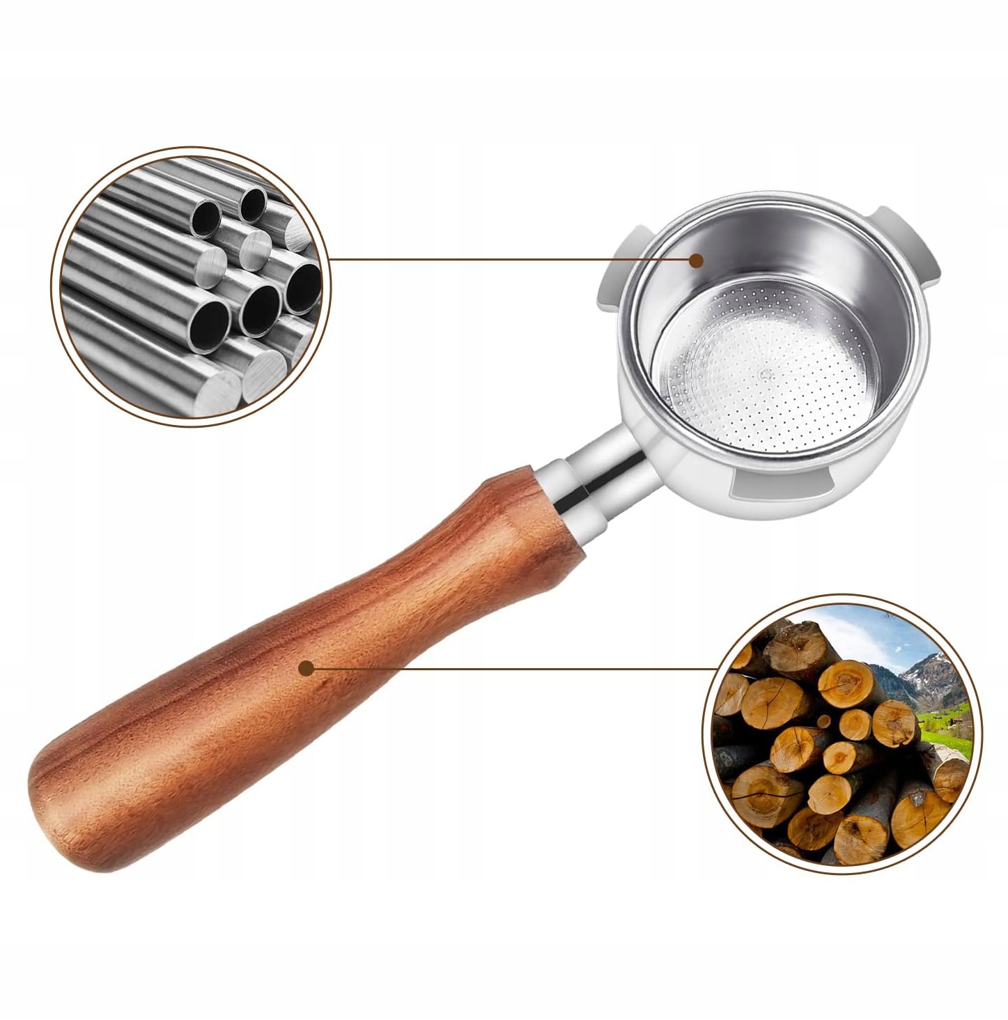 ☕【Знімна конструкція】 Дерев’яна ручка, тримач фільтра та кошик для фільтра знімні. Його легко розібрати та повторно зібрати, він дає змогу легко очистити всі закутки та щілини та зберігає бездонний фільтр чистим та свіжим.