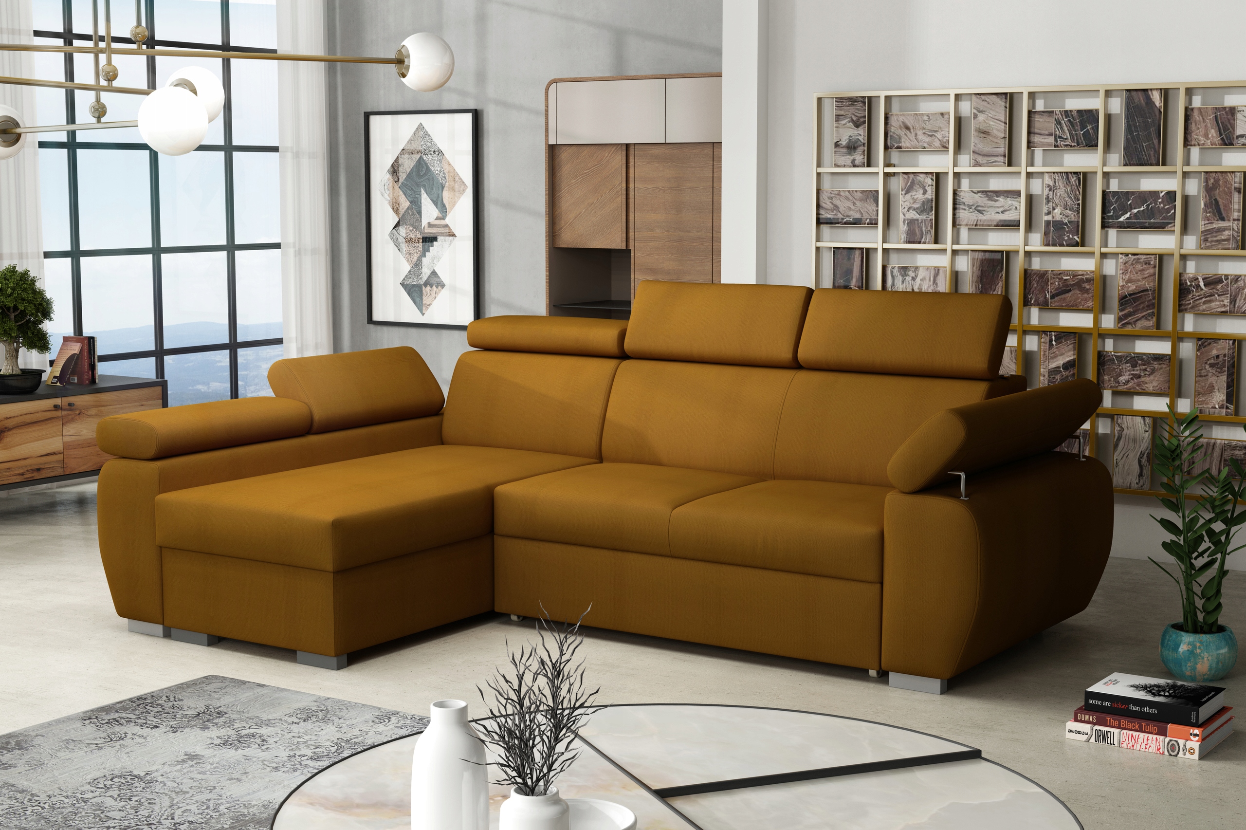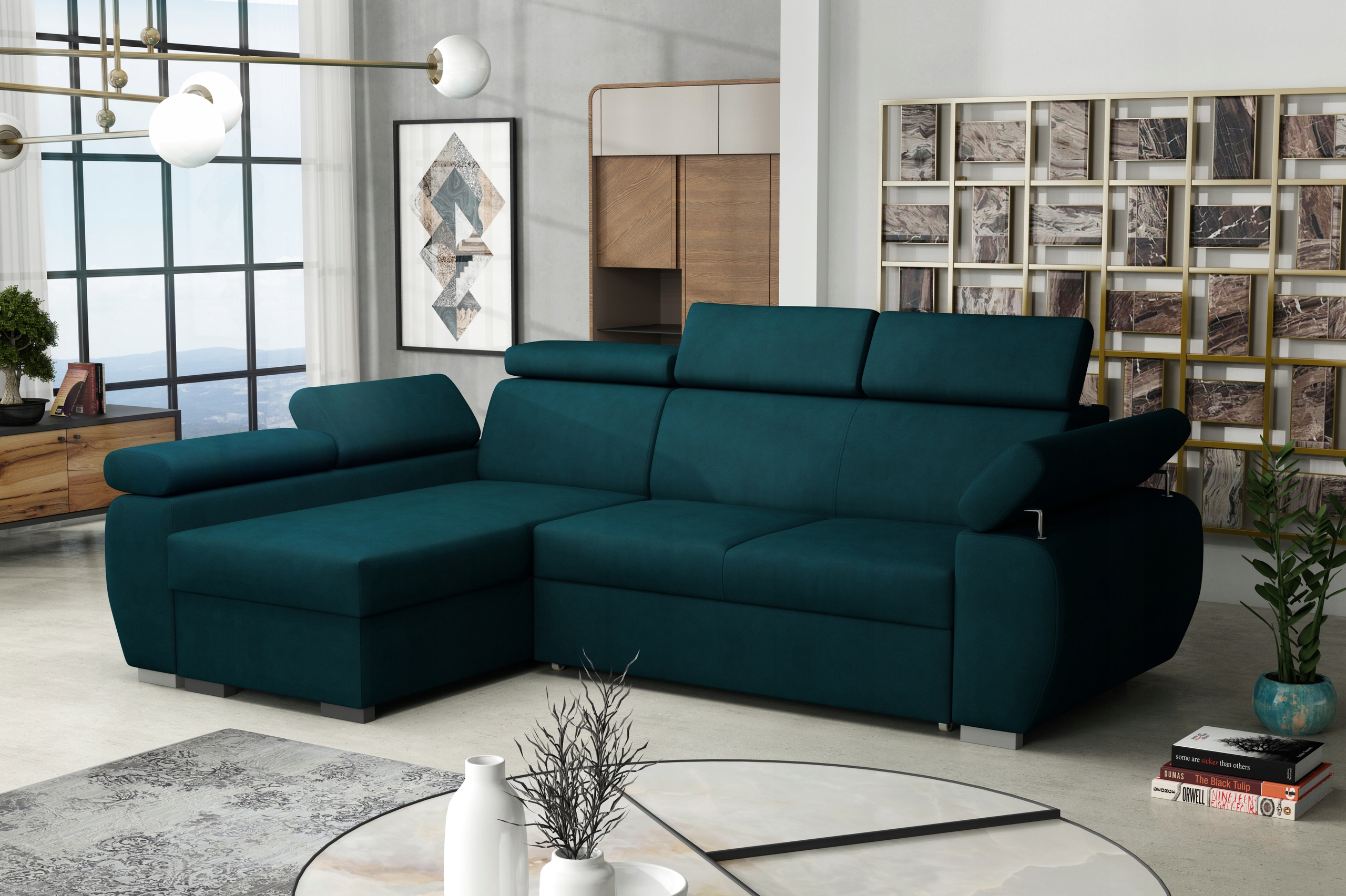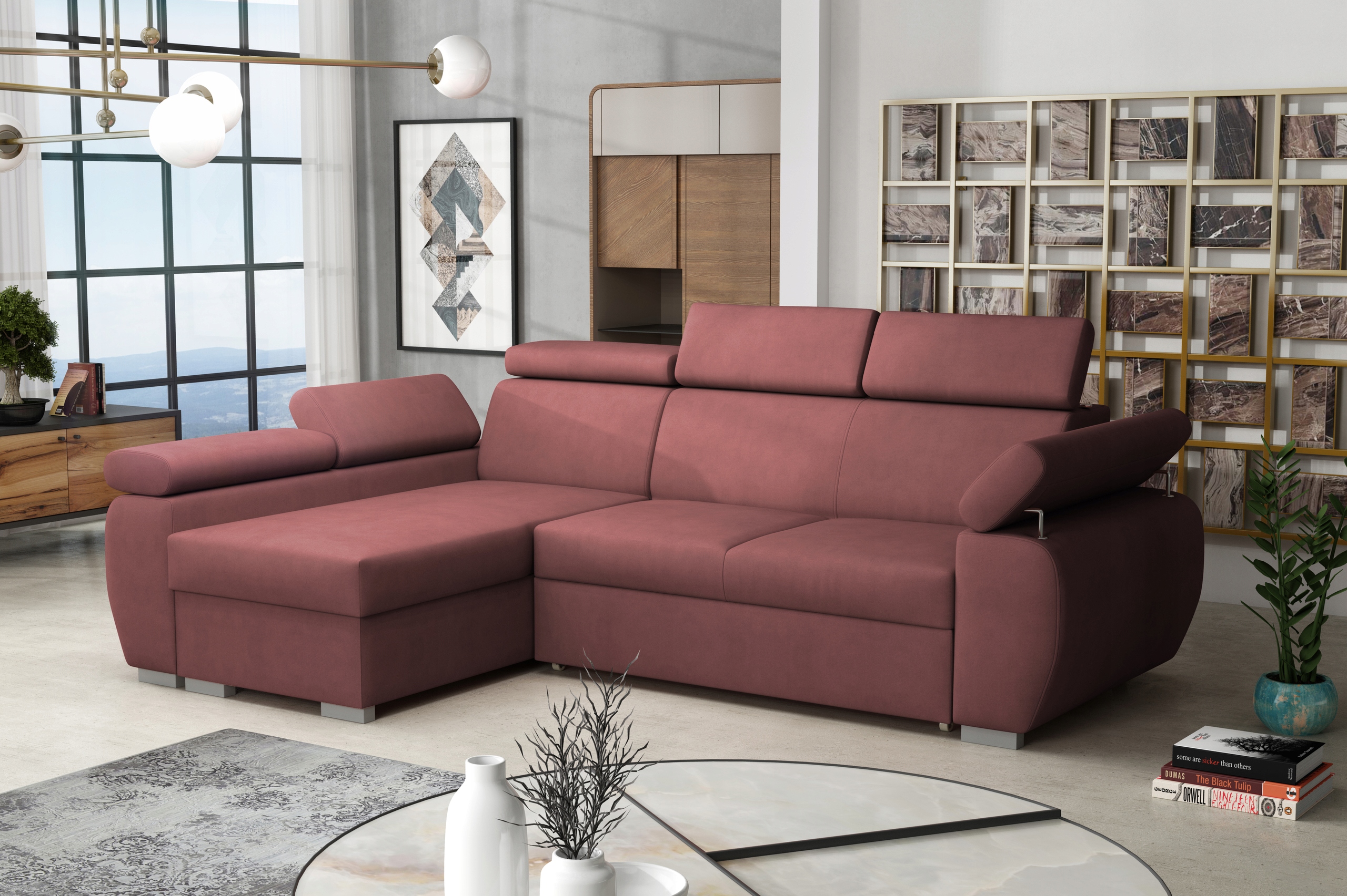 Кутовий диван PORTLAND - це вишуканий елемент облаштування кожної вітальні, де ви, безсумнівно, завдяки чудовому стилю стане центральним місцем збору ваших близьких. PORTLAND - це системні меблі - це дозволяє самостійно підібрати конфігурацію і підібрати її під свій інтер'єр. Практичні меблі - оснащені функцією сну і контейнером для постільної білизни. Особливо таке рішення оцінять люди, які іноді приймають гостей на ночівлю. Регульовані підголівники та підлокітники дозволяють налаштувати комфорт сидіння відповідно до ваших потреб.