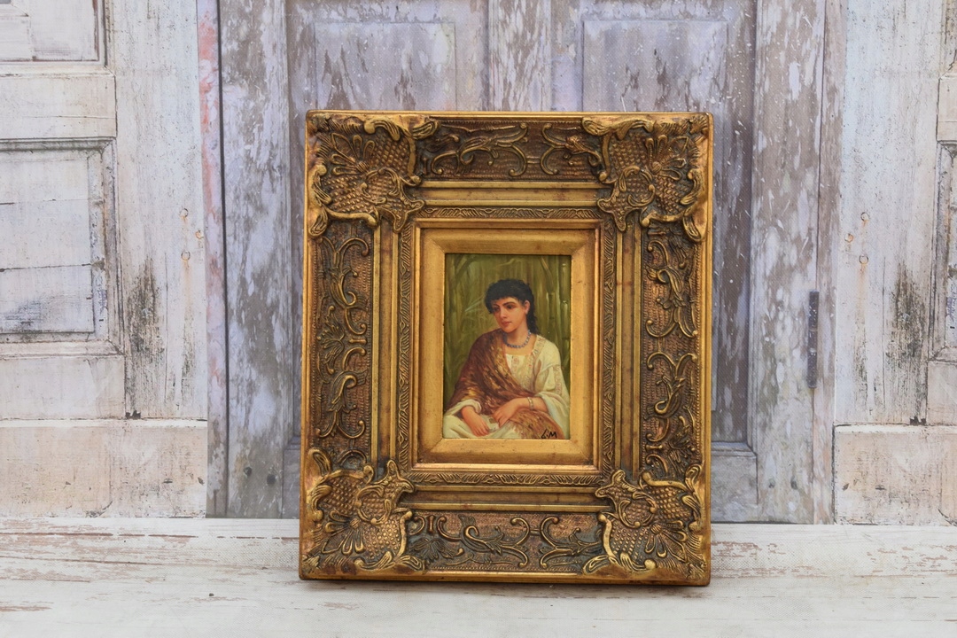 Портрет - Дівчина в білій сукні - Картина маслом - Золота рамка