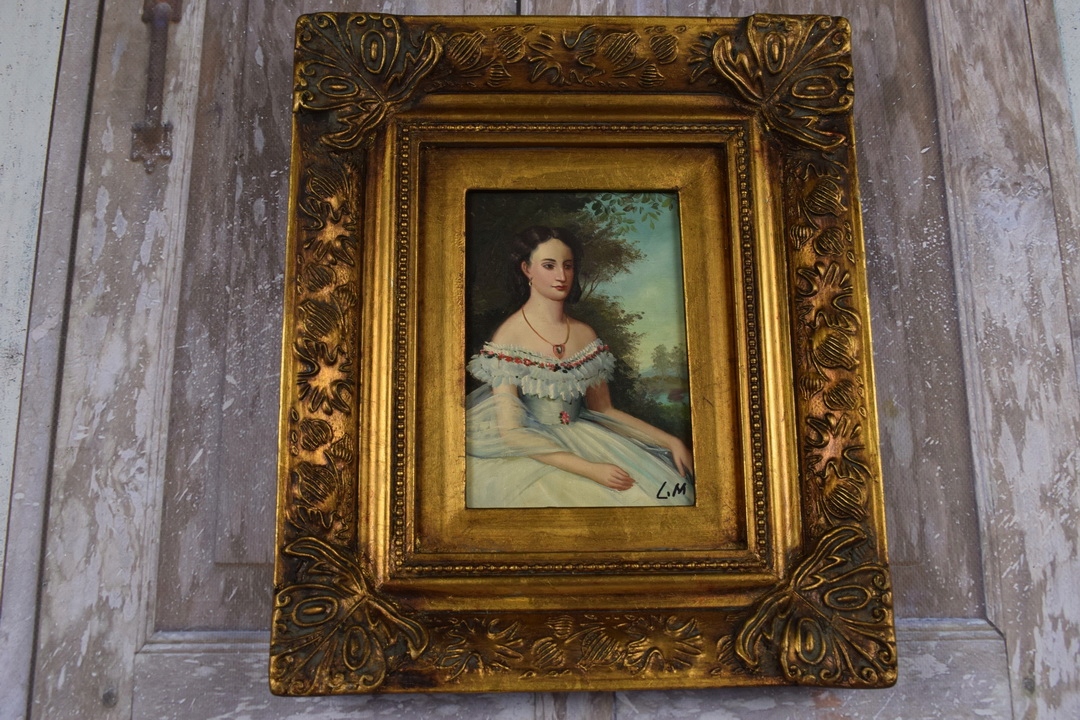 Портрет - французький аристократ у сукні - картина маслом - золота рамка