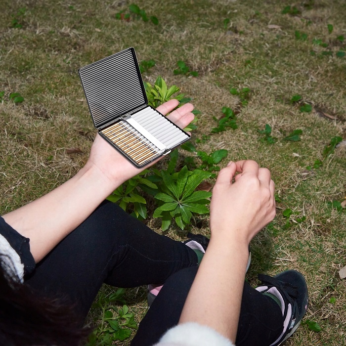 Портсигар, металевий, плоский, чорний