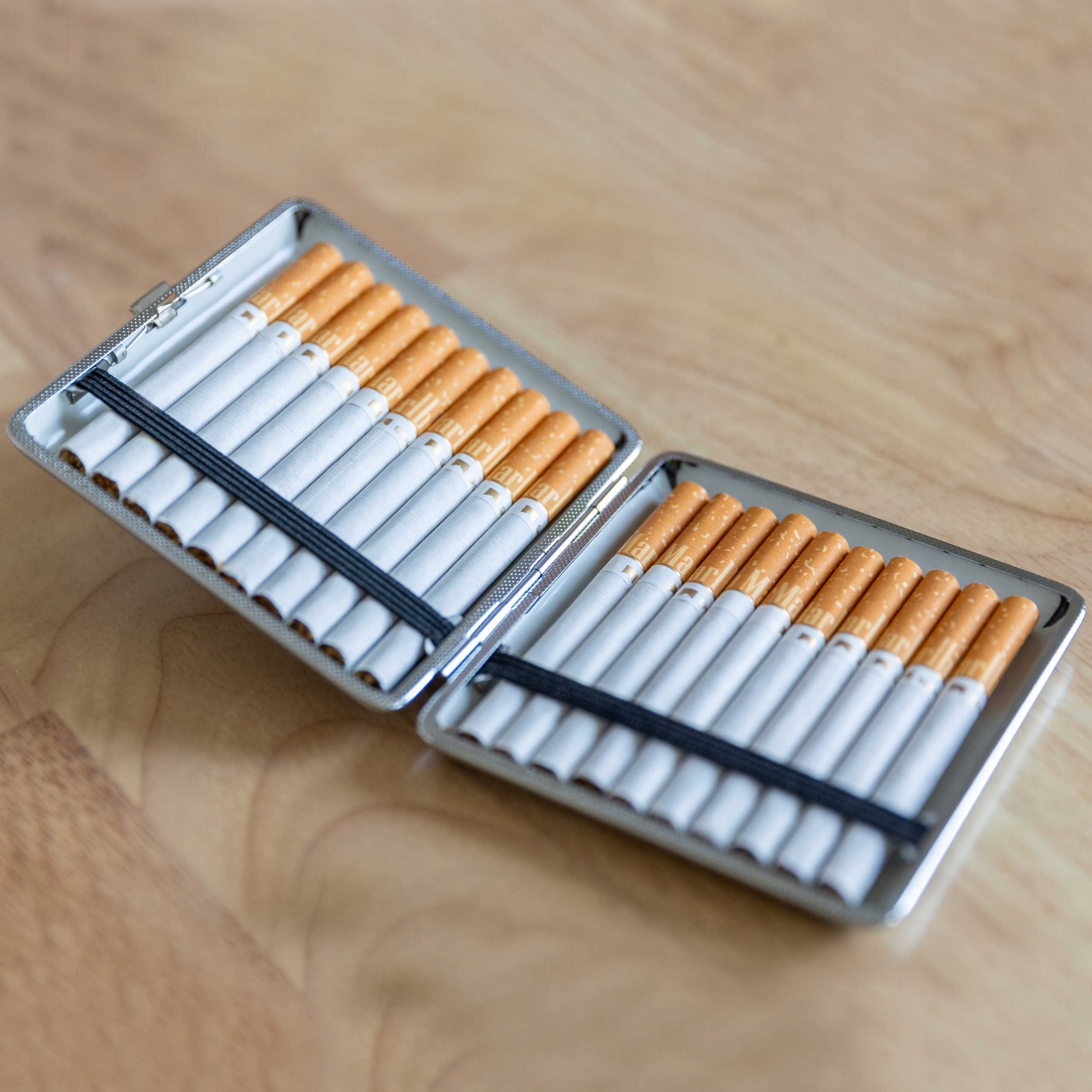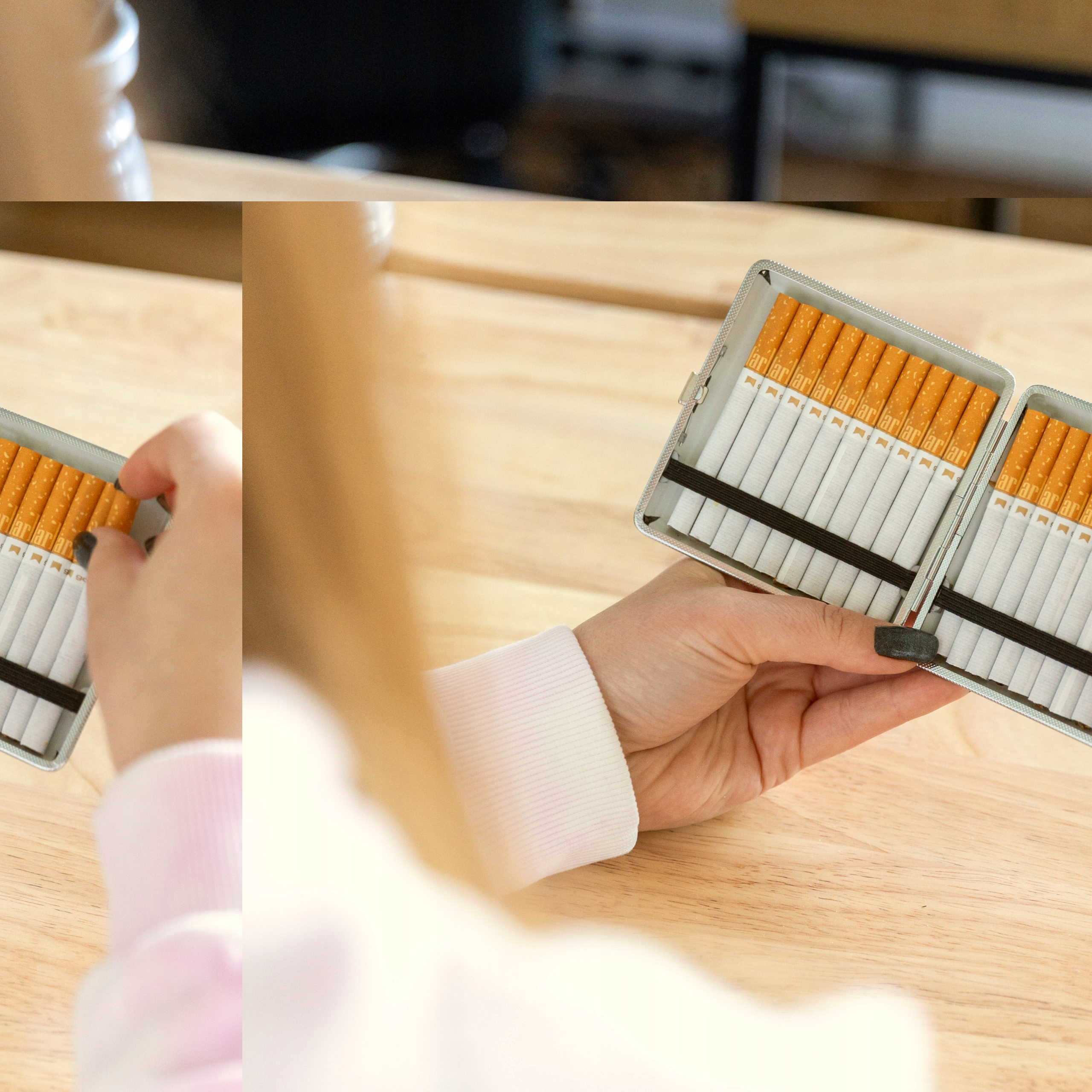 ⭕Якісний елегантний портсигар із пластику, укріпленого металевими краями. Він вміщує 20 сигарет, тож їх можна виймати зі стандартної м’якої упаковки та класти назад. Крім того, це буде чудовим рішенням для зберігання власних сигарет.