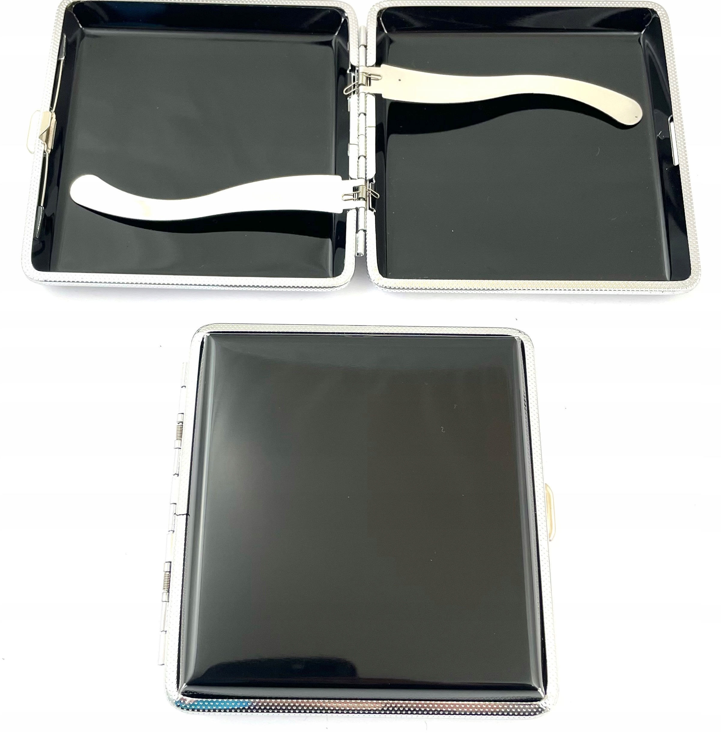 Портсигар Atomic, виготовлений повністю з металу. Металева застібка з пружиною. Металева кліпса, що захищає сигарети від випадання. Висока якість, точне виконання.