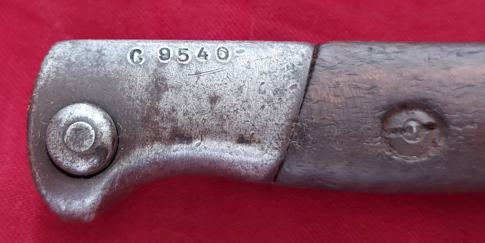 Копія, видна на доданих фотографіях, добре збережена. Лезо без обсягу і не торкається. Збережений має оригінальну оксиду, видимий слід від вагінального лідера на земноводних. Обшивка ручки дерев’яна, оригінальна. Замок Bayonet функціональний. На голові число C9540 .