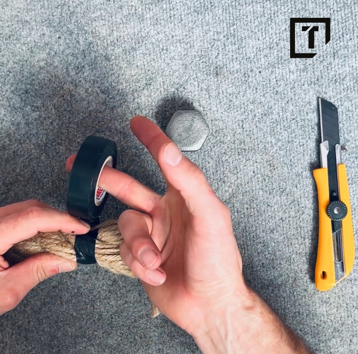 сталеві елементи, через які виготовляється мотузка, мають різьбові отвори. На їхньому місці викрутіть гвинти в наборі, завдяки якому мотузка буде заблокована.