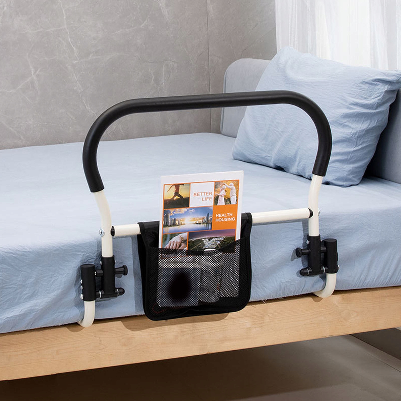 5. МІЦНІ ТА БЕЗПЕЧНІ: виготовлені з високоякісної вуглецевої сталі, наші поручні для ліжка є надійними, забезпечуючи стабільність і безпеку, коли ви встаєте з ліжка. Кріпильний ремінь забезпечує надійне утримання на каркасі ліжка.