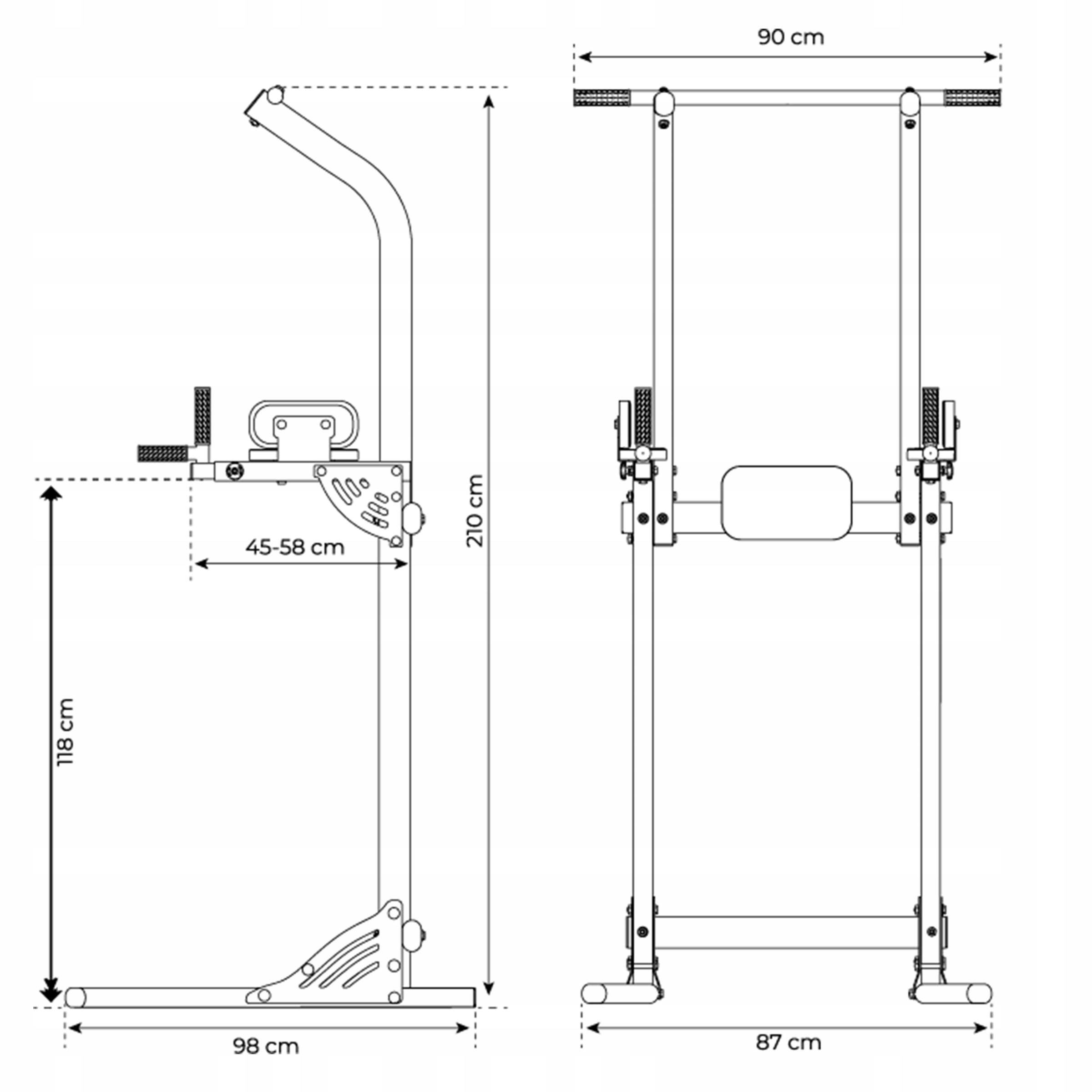 Багатофункціональна штанга з поручнями - це обладнання, яке можна легко використовувати для різних видів діяльності. Ви можете адаптувати всю структуру до своїх потреб і таким чином підвищити інтенсивність тренувань. Регульована відстань ручок від підлокітників дозволяє підлаштувати пристрій під висоту тренажера.