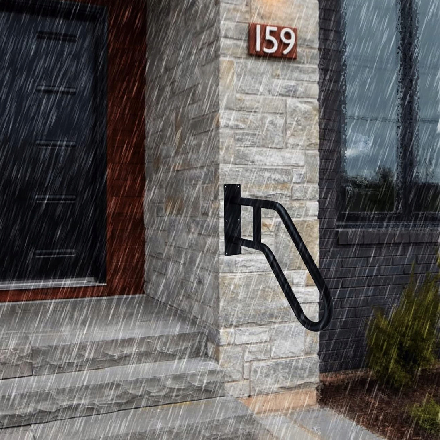 Ці вхідні перила мають діаметр 2,5 см і довжину 72,7 см. Він простягається на 28,7 см по прямій лінії, а потім падає під кутом 45 градусів приблизно на 43,7 см. Ця зручна конструкція забезпечує безпеку на коротких сходах і пропонує кілька рівнів опори для запобігання падінню.