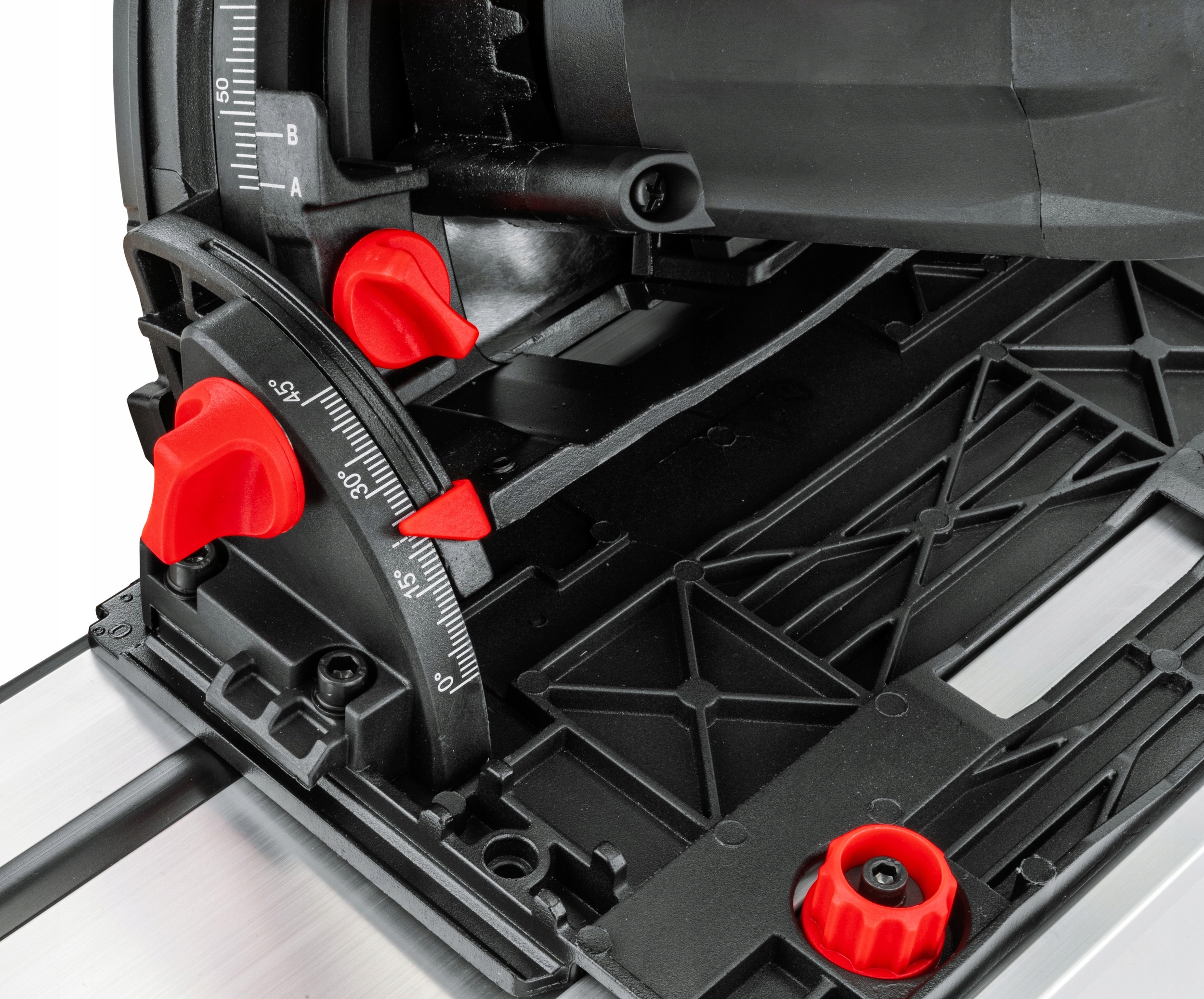 Ця занурювальна пила, оснащена надзвичайно потужним щітковим двигуном потужністю 2400 Вт, забезпечує чудову продуктивність і неперевершену точність. Завдяки цій потужності пристрій може легко різати різні матеріали, пропонуючи максимальну глибину 56 мм під прямим кутом, що дозволяє робити глибокі та точні різи в товстих матеріалах. При куті різання 45° глибина становить 42 мм, що підвищує універсальність інструменту та дозволяє працювати над більш складними проектами. Двигун був розроблений з урахуванням інтенсивної роботи - завдяки цьому інструмент не тільки ефективний, але й довговічний і готовий до тривалого використання в складних умовах майстерні.