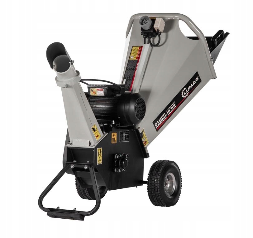 Подрібнювач RAMBO-HC10E від Lumag Німеччина з потужним і ефективним електродвигуном 230В оснащений двома ріжучими ножами. Пристрій, що приводиться в дію двома клиновими ременями, здатний подрібнювати гілки діаметром до 50 мм. Подрібнювач може подрібнювати будь-яку деревину з садових живців та інших супутніх матеріалів. Електричний двигун робить подрібнювач набагато тихішим, ніж машини з двигуном внутрішнього згоряння.