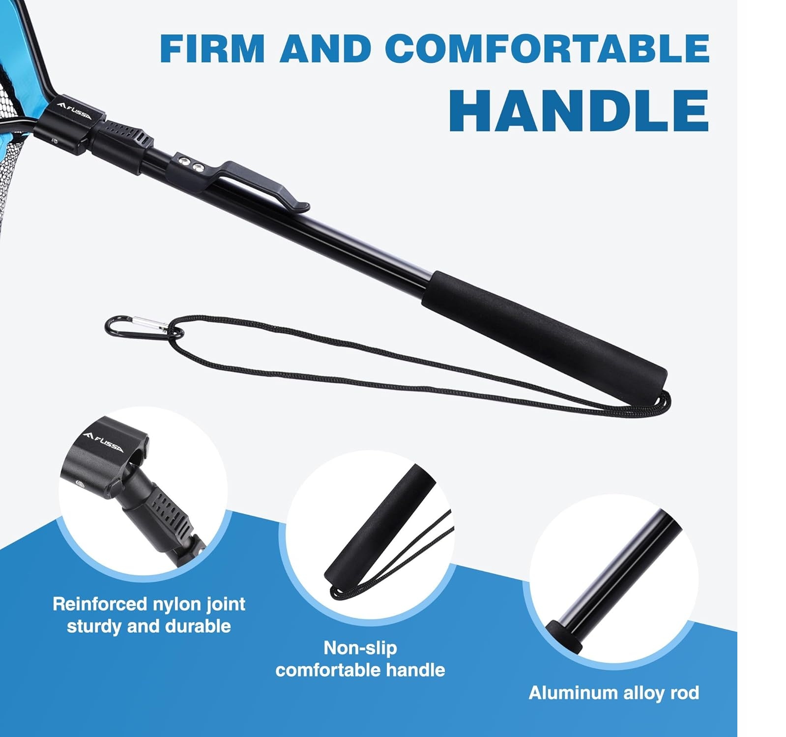 - Гумове покриття: Ця посадкова сітка має міцну сітку, покриту гумою, що полегшує зловживання та звільнення риби, не пошкоджуючи їх лусочки. Це запобігає гачтам і запобігає засміченню або поглинаючих неприємних запахів.