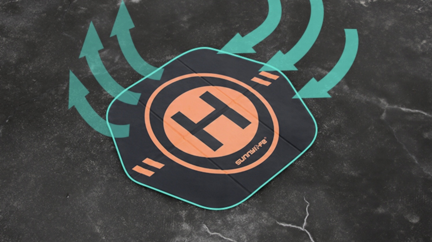 Килимок працює відмінно, особливо в складних умовах, на піщаних, гравійних поверхнях, у лісі, на лузі, де частинки піску, гравію, травинки, листя тощо можуть забруднити дрон під час зльоту.