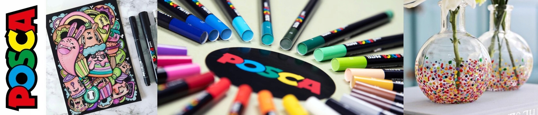 Posca — це серія креативних маркерів виробництва UNI Mitsubishi Pencil. Вони дозволяють декорувати вироби з багатьох матеріалів. Прикраси характеризуються чистими, яскравими кольорами та стійкістю до прання. Завдяки Posca ви створите власні унікальні дизайни.