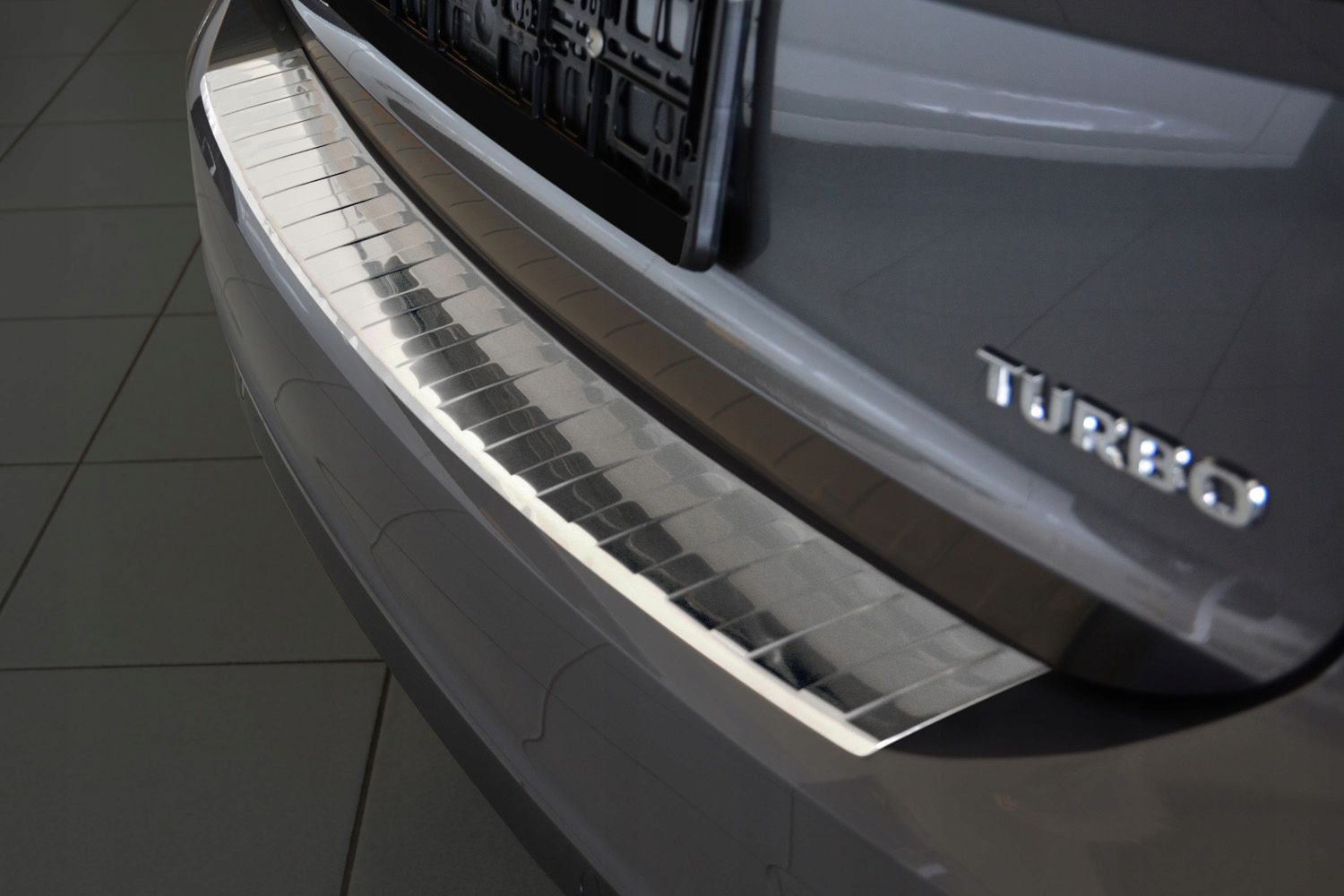 ▶️ Сталева накладказ вигином на бампер, гарантує ідеальне прилягання до заднього бампераданого автомобіля. Захищаєвід пошкоджень, спричинених щоденним використанням автомобіля. Крім того, він виконує декоративну функцію, оригінальний дизайн надає автомобілю елегантний вигляд. Накладка на задній бампер з нержавіючої сталі з тисненням.